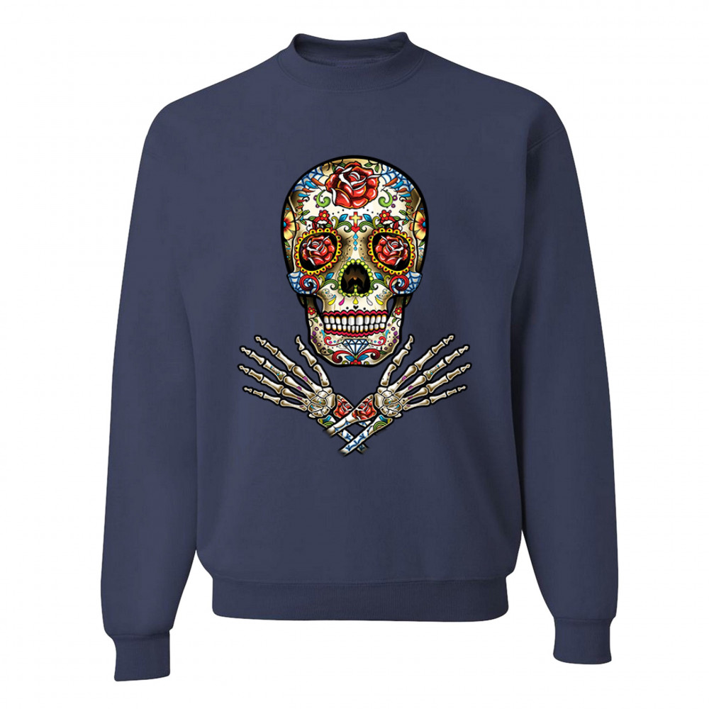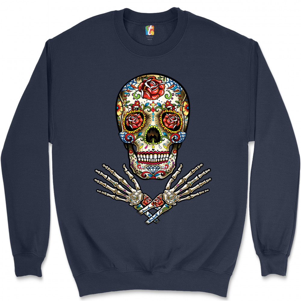 CALAVERA ARMS CROSSED sweatshirt dia de los muertos day of the dead crewneck navy blue