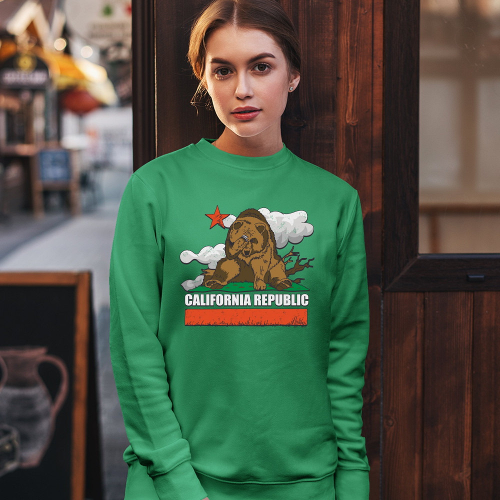 CALIFORNIA BEAR FACEPALM sweatshirt the great california exodus crewneck green