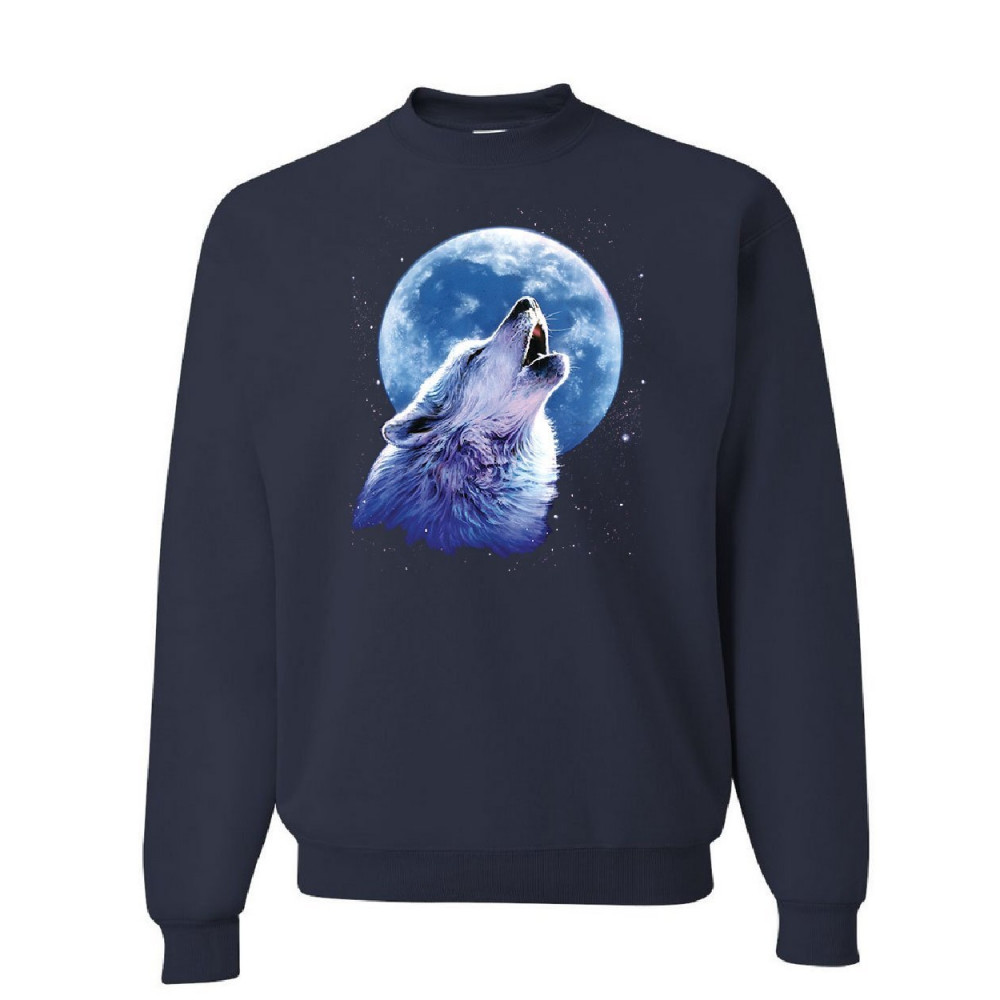 CALL OF THE WILD sweatshirt lone wolf howling at the moon wildlife sweater navy blue