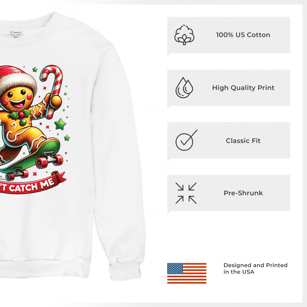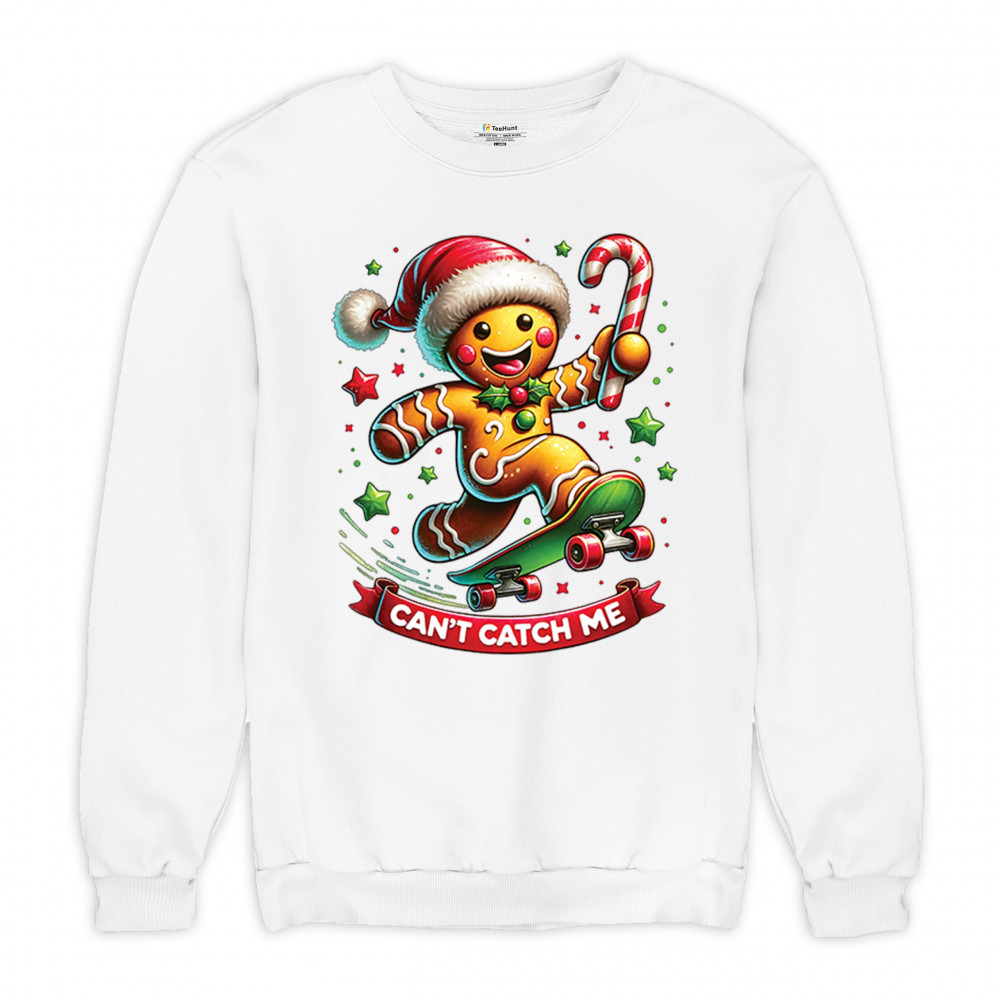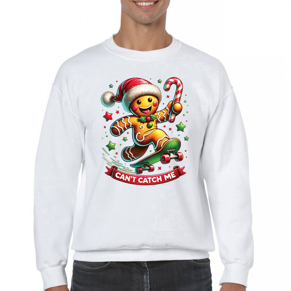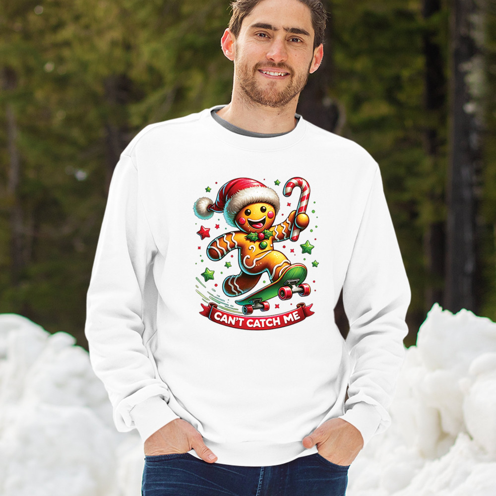 A fun Christmas design featuring a gingerbread character on a skateboard, candy cane in hand, and bright festive colors. Perfect for holiday party outfits, family gatherings, Christmas photos, festive humor fans, stocking stuffer gifting, winter celebrations, and anyone who loves playful seasonal graphics with cheerful personality.