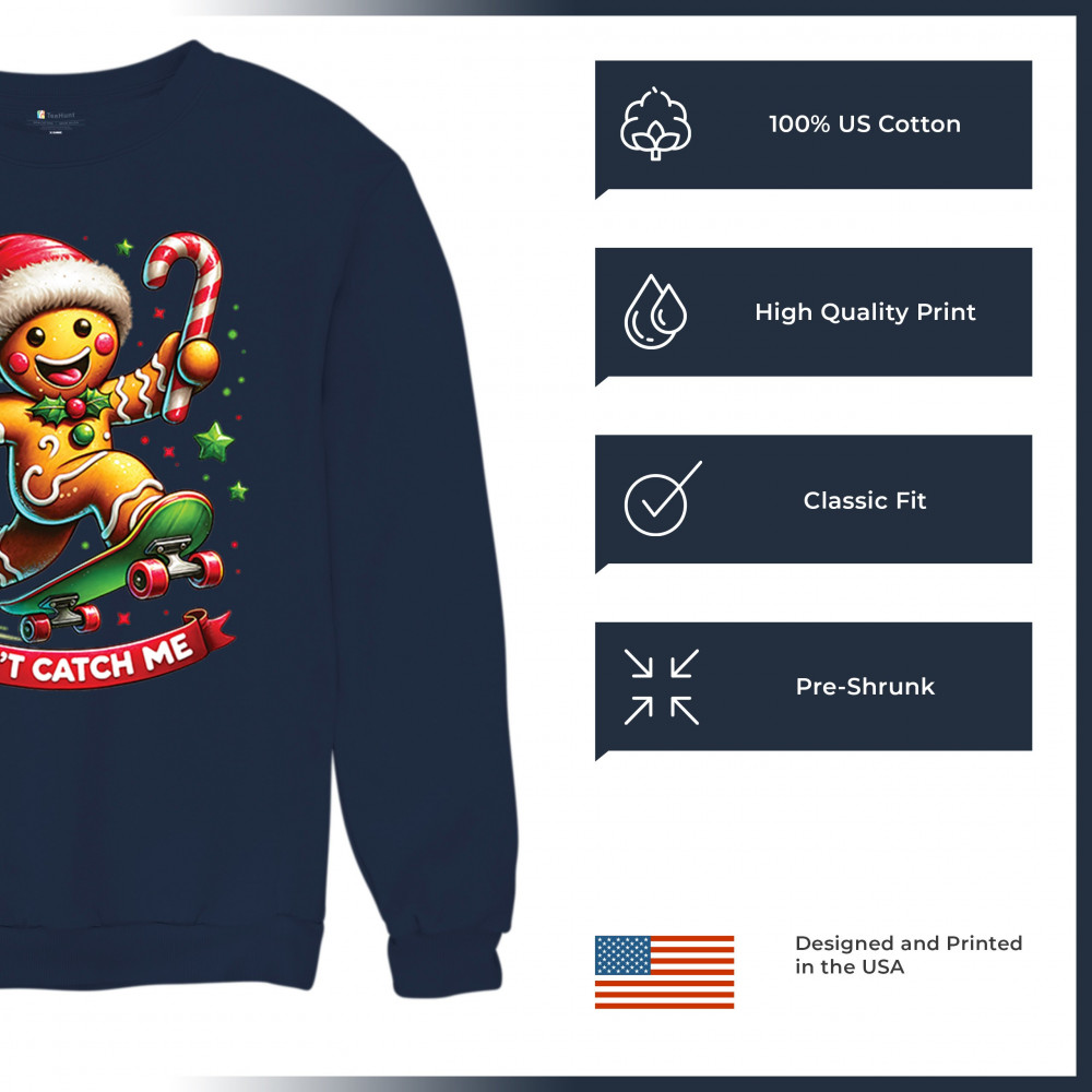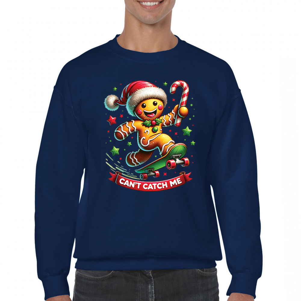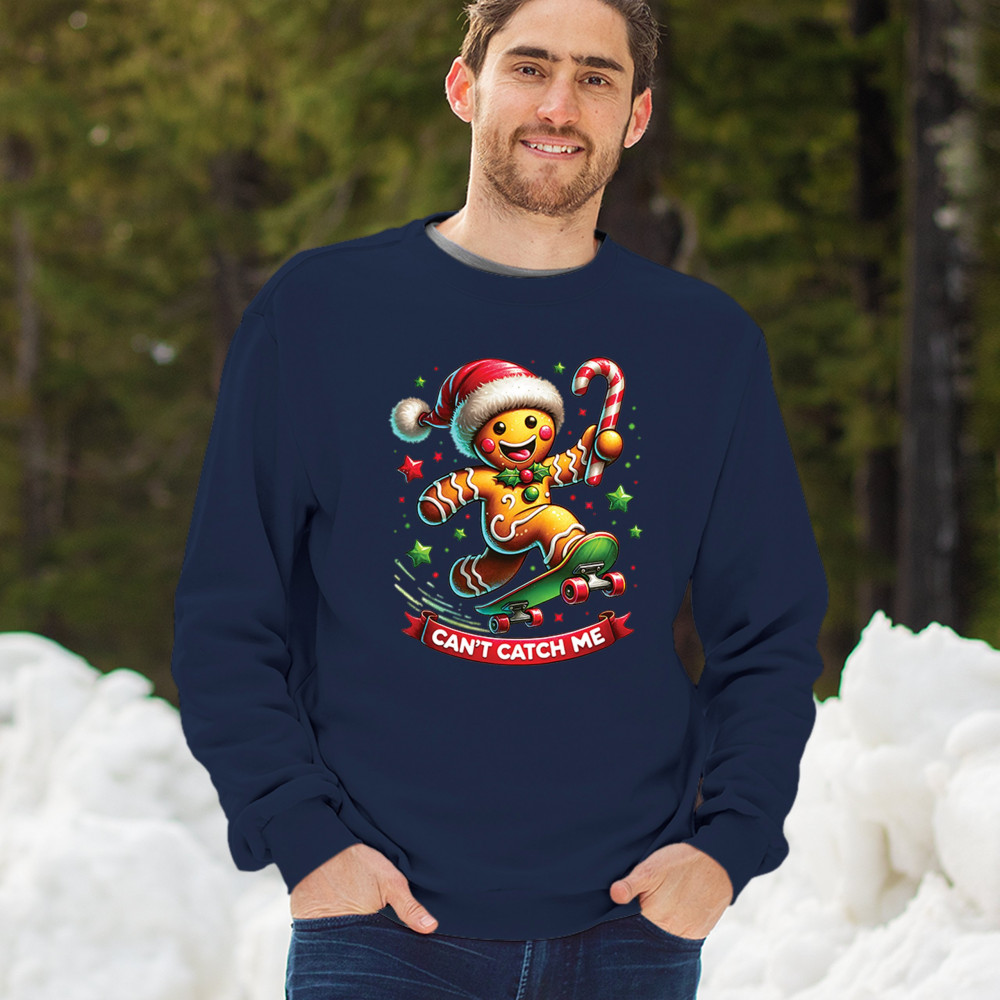 A fun Christmas design featuring a gingerbread character on a skateboard, candy cane in hand, and bright festive colors. Perfect for holiday party outfits, family gatherings, Christmas photos, festive humor fans, stocking stuffer gifting, winter celebrations, and anyone who loves playful seasonal graphics with cheerful personality.