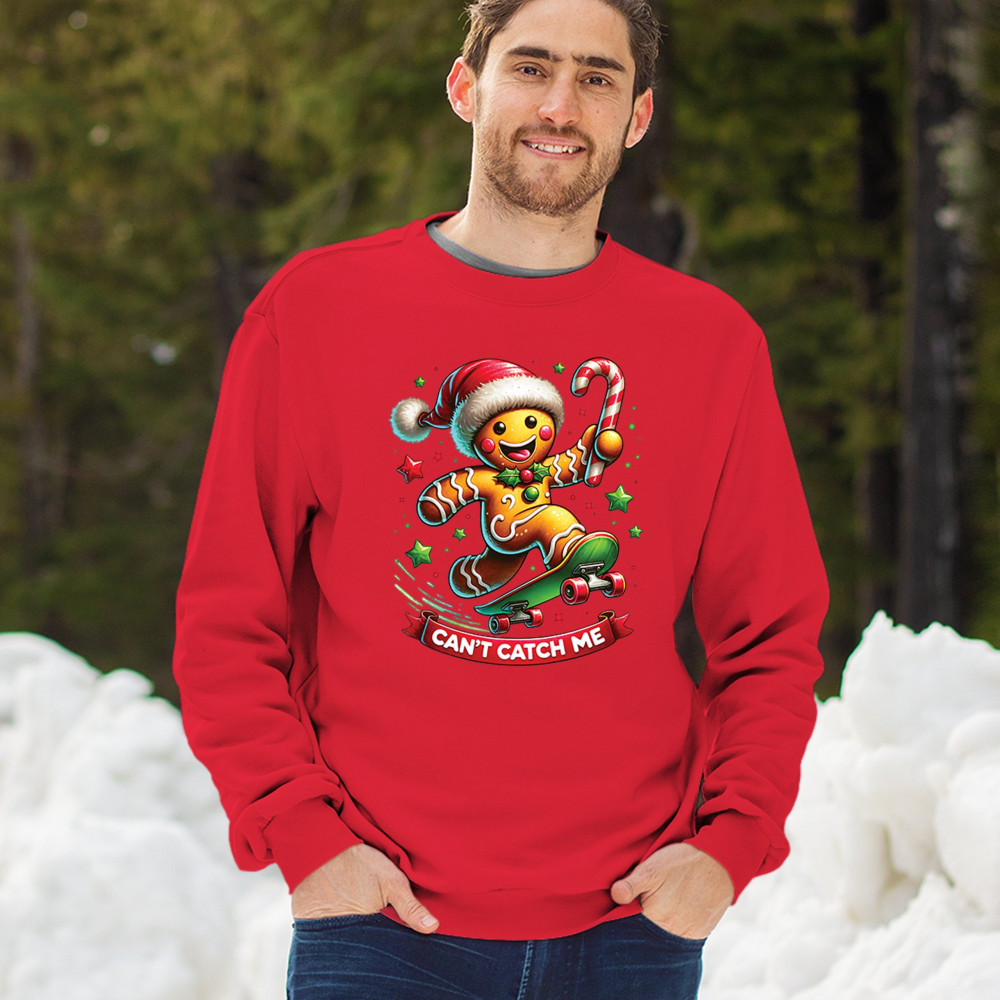 A fun Christmas design featuring a gingerbread character on a skateboard, candy cane in hand, and bright festive colors. Perfect for holiday party outfits, family gatherings, Christmas photos, festive humor fans, stocking stuffer gifting, winter celebrations, and anyone who loves playful seasonal graphics with cheerful personality.