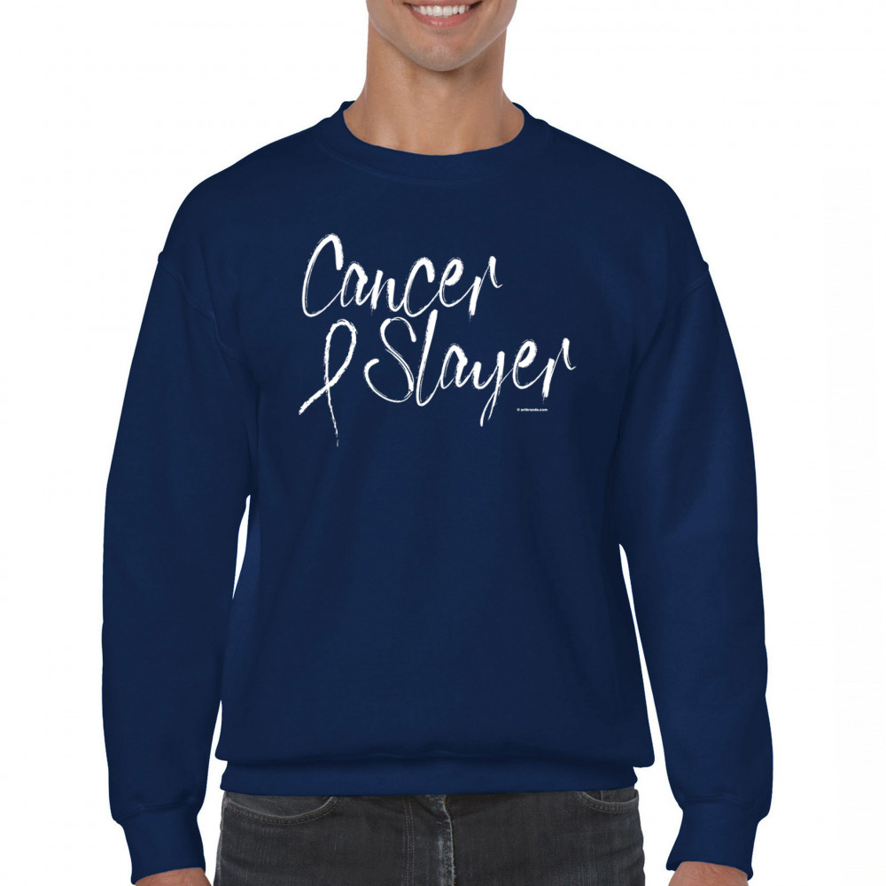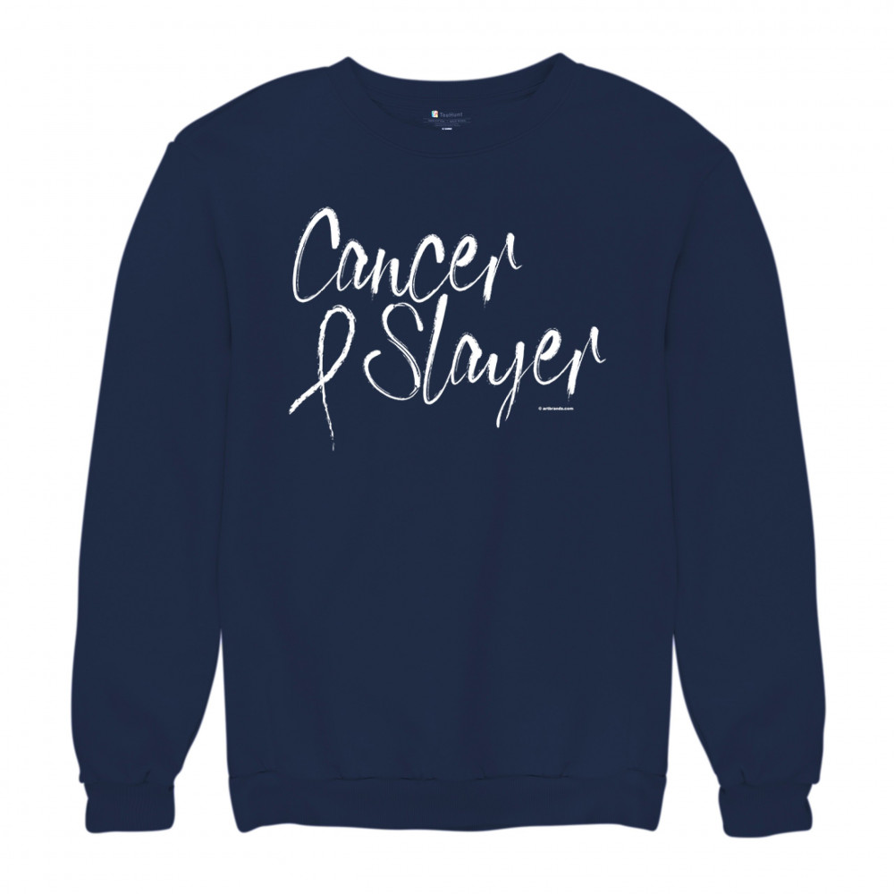 CANCER SLAYER sweatshirt breast cancer awareness ribbon hope healing crewneck navy blue