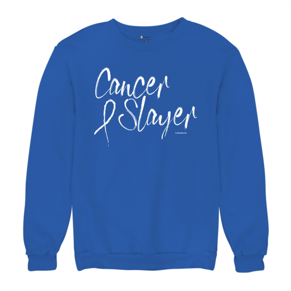 CANCER SLAYER sweatshirt breast cancer awareness ribbon hope healing crewneck royal blue