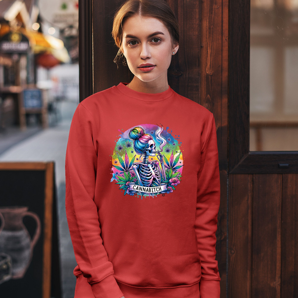 Unleash your inner weed queen with this CANNABITCH design—a psychedelic rainbow skeleton with major stoner girl energy. Dripping in neon colors, bold bud leaves, and fierce feminine vibes, it's a head-turning graphic for cannabis culture lovers, party girls, and unapologetically high women.
