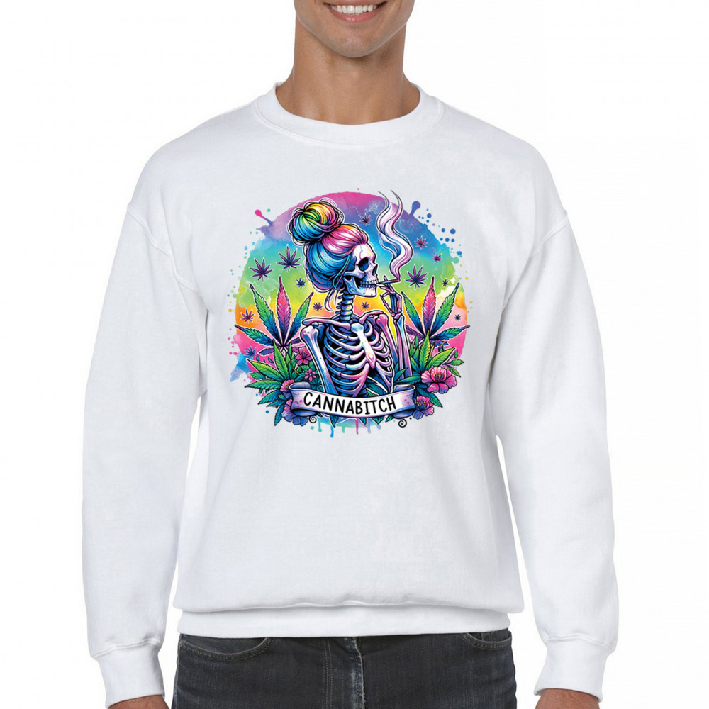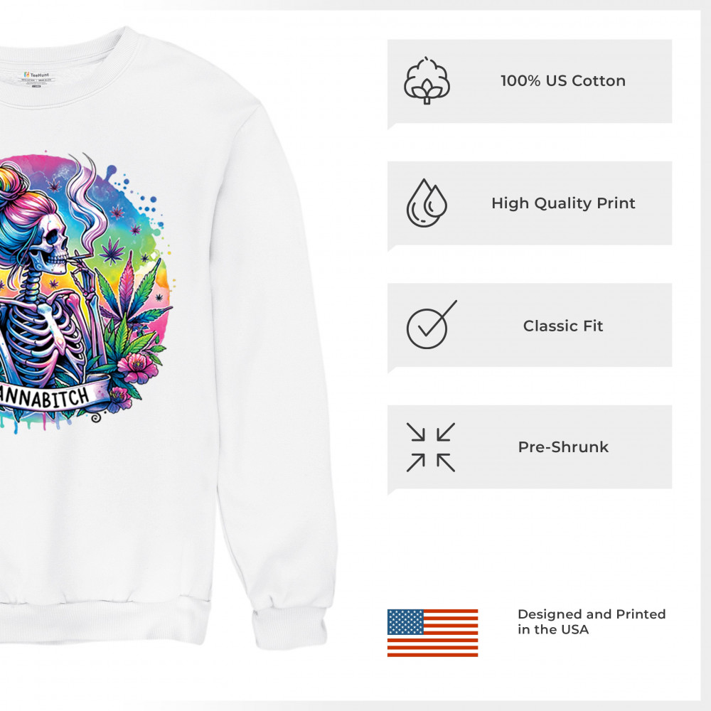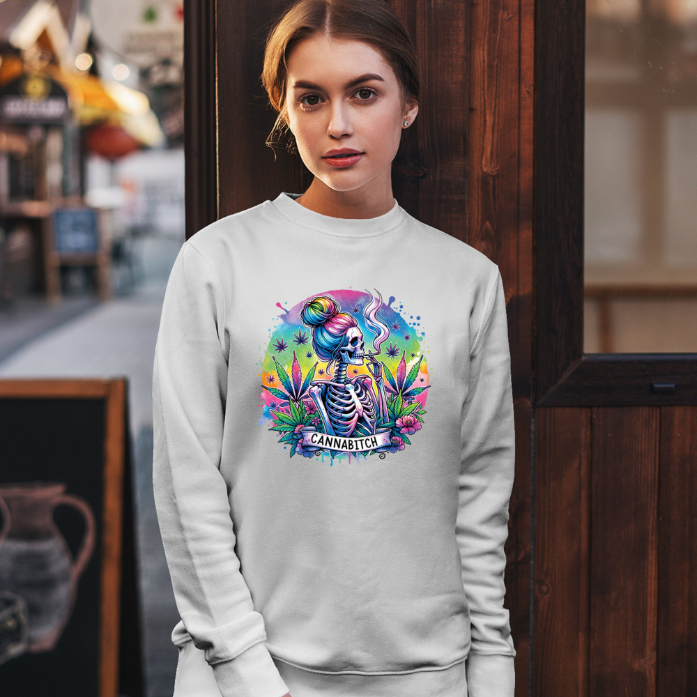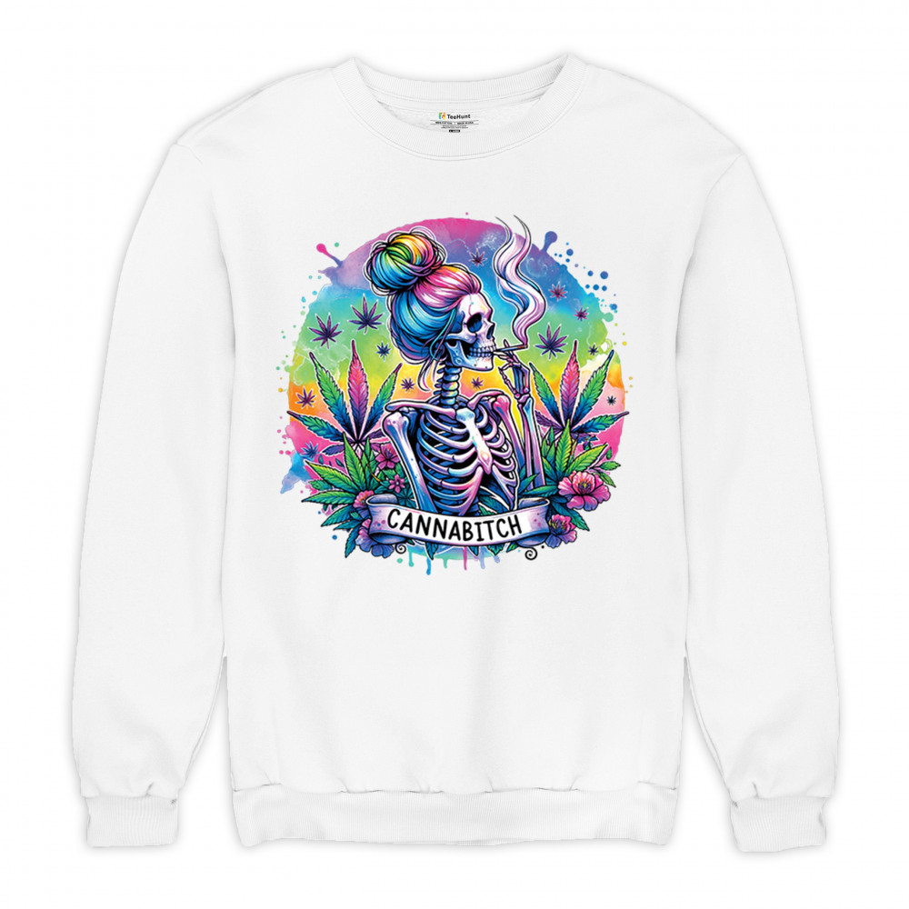 Unleash your inner weed queen with this CANNABITCH design—a psychedelic rainbow skeleton with major stoner girl energy. Dripping in neon colors, bold bud leaves, and fierce feminine vibes, it's a head-turning graphic for cannabis culture lovers, party girls, and unapologetically high women.