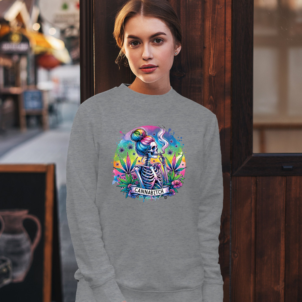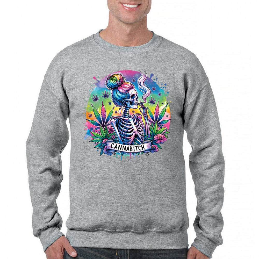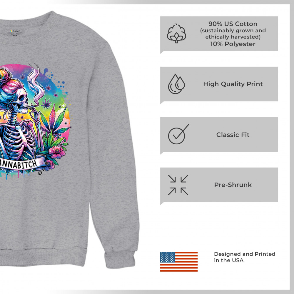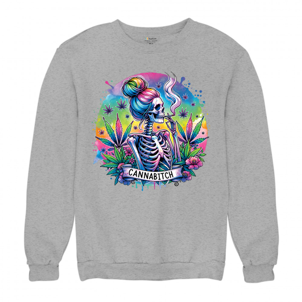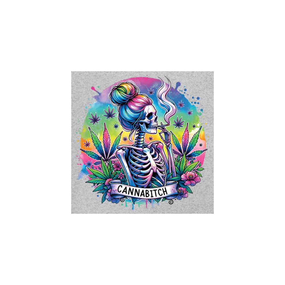 Unleash your inner weed queen with this CANNABITCH design—a psychedelic rainbow skeleton with major stoner girl energy. Dripping in neon colors, bold bud leaves, and fierce feminine vibes, it's a head-turning graphic for cannabis culture lovers, party girls, and unapologetically high women.