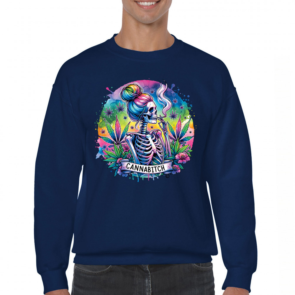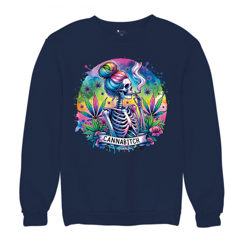 Unleash your inner weed queen with this CANNABITCH design—a psychedelic rainbow skeleton with major stoner girl energy. Dripping in neon colors, bold bud leaves, and fierce feminine vibes, it's a head-turning graphic for cannabis culture lovers, party girls, and unapologetically high women.