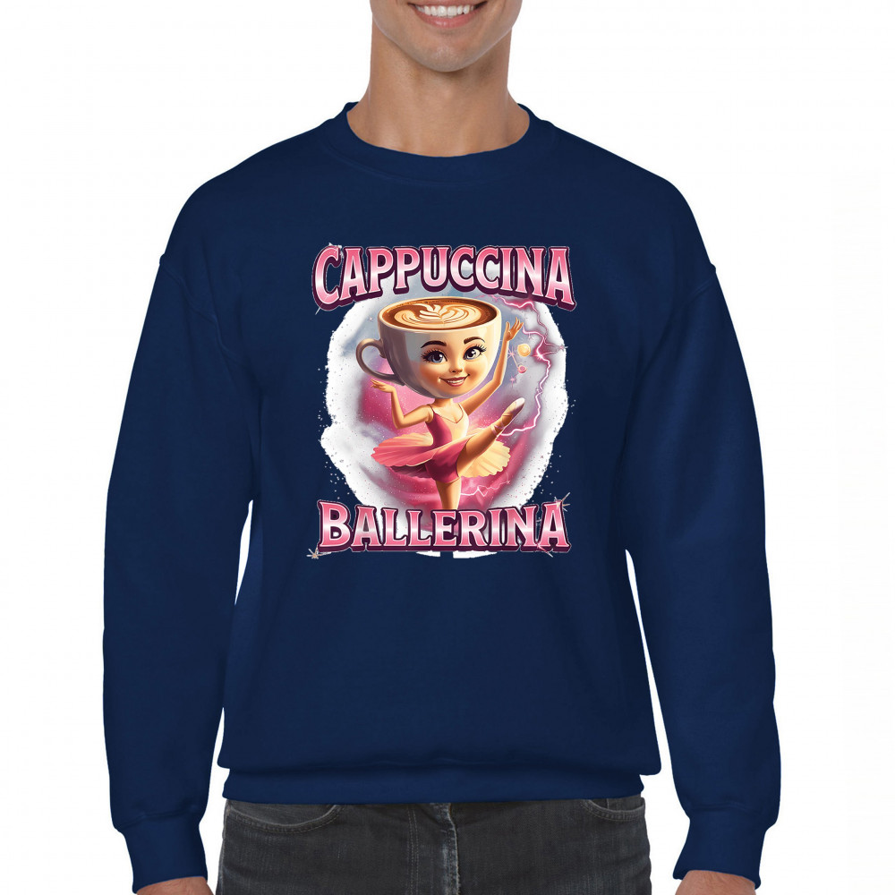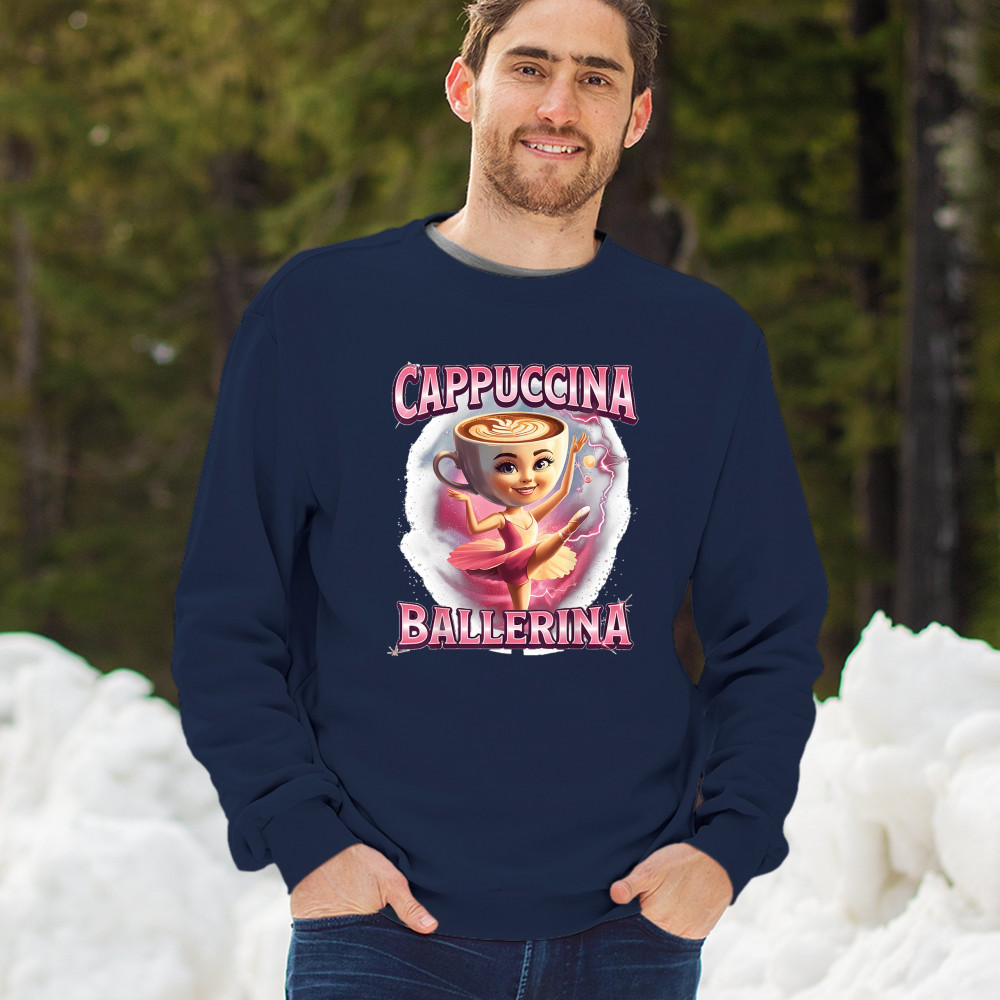 Cappuccina Ballerina is your perfect mix of meme chaos and coffee-core fashion. This absurd design features a ballet-dancing cappuccino head with weirdcore flair and Gen Z humor. A surreal blend of ironic internet fashion, TikTok trends, and espresso madness—ideal for meme lovers, caffeine addicts, and viral absurdists alike.