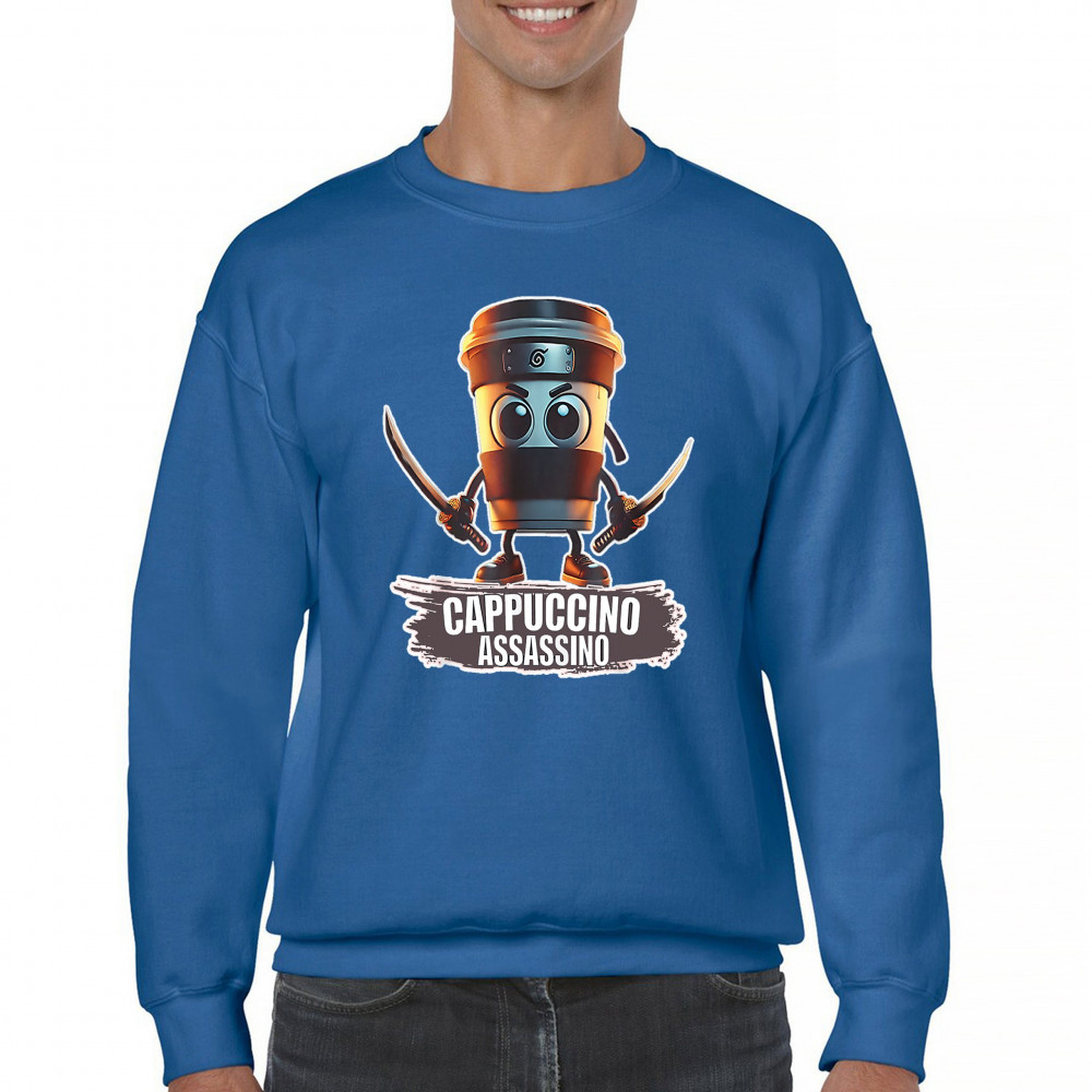 Cappuccino Assassino fuses cursed coffee memes, ninja chaos, ironic TikTok fashion, espresso humor, and Gen Z internet absurdity.