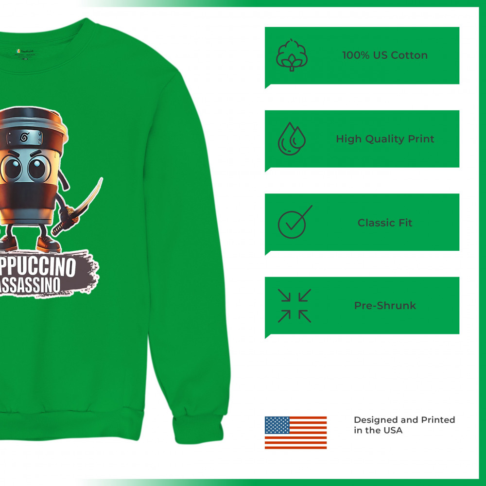 Cappuccino Assassino fuses cursed coffee memes, ninja chaos, ironic TikTok fashion, espresso humor, and Gen Z internet absurdity.