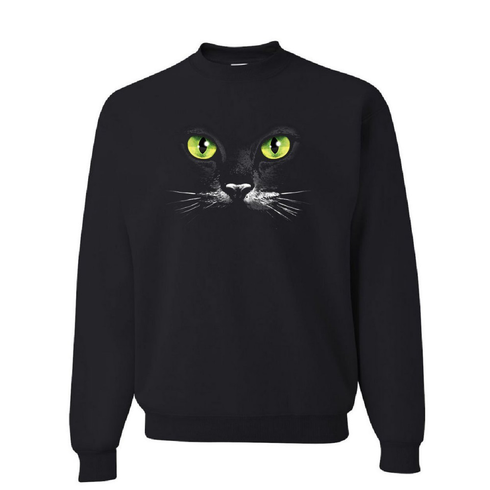 CAT GREEN EYES sweatshirt animal pet lovers kitten huge cat face sweater black