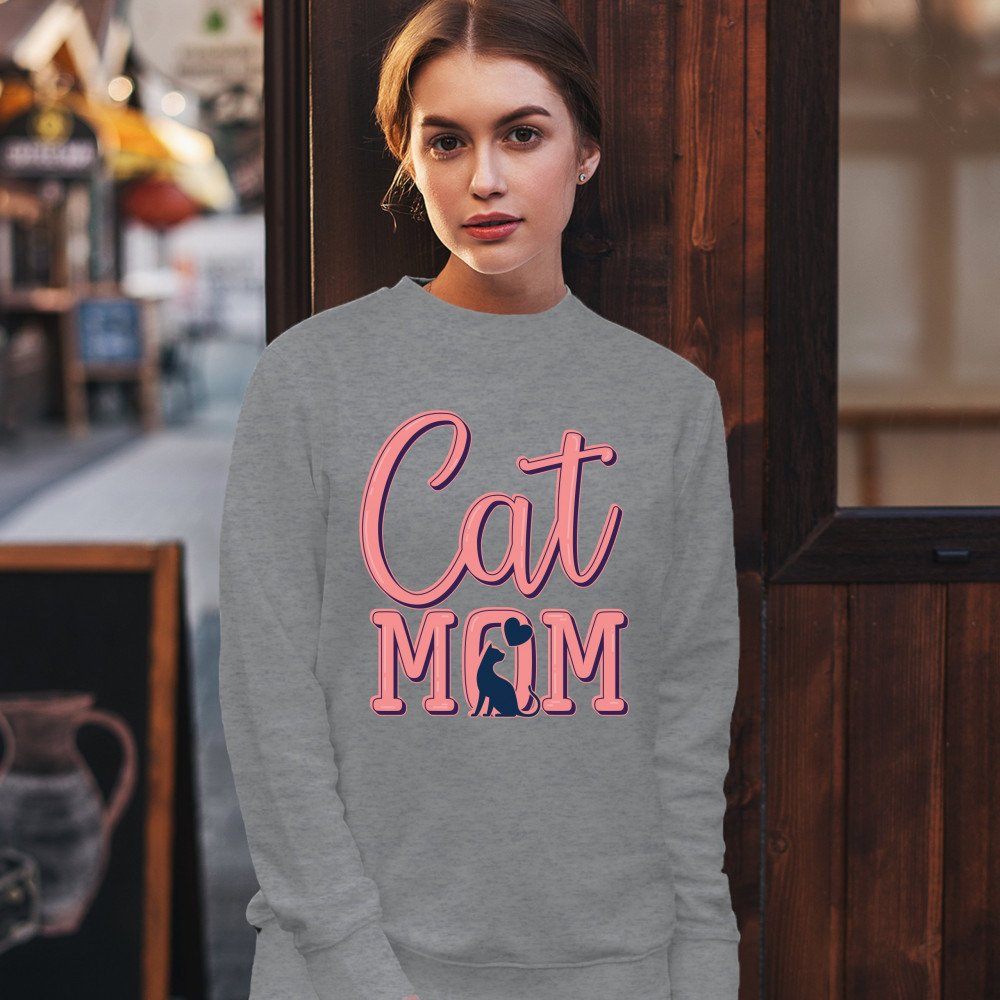 CAT MOM sweatshirt mother's day i love my my pet lover mama crewneck gray