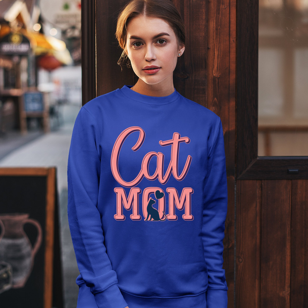 CAT MOM sweatshirt mother's day i love my my pet lover mama crewneck royal blue