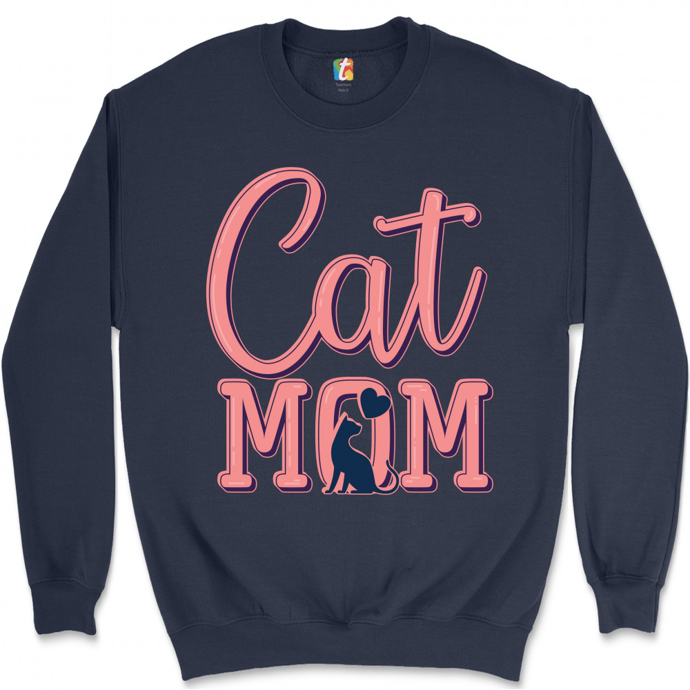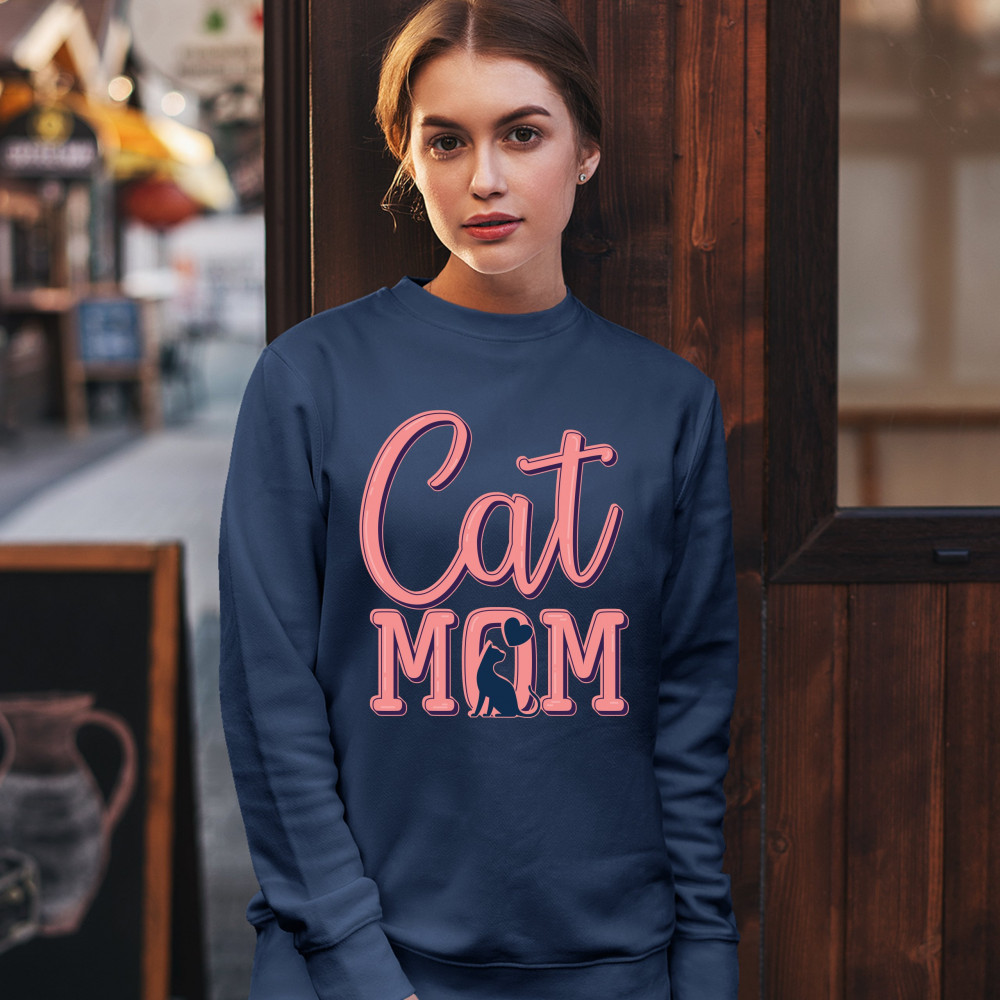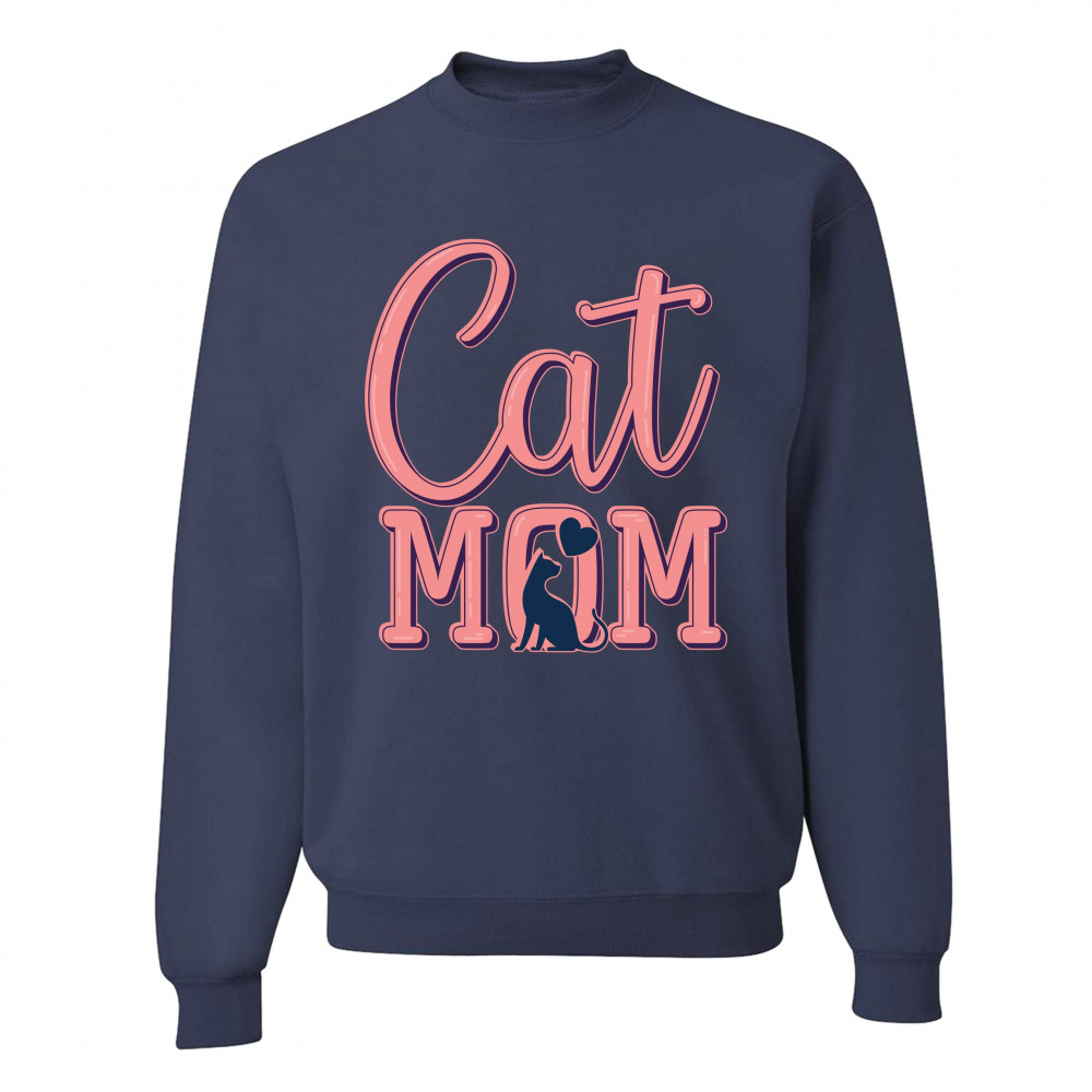 CAT MOM sweatshirt mother's day i love my my pet lover mama crewneck navy blue