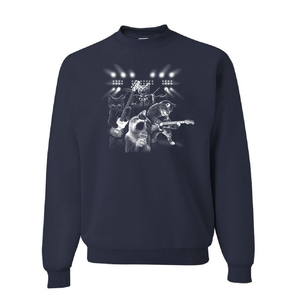 CATS ROCK CONCERT sweatshirt rock & roll cat lover kitten music sweater navy blue