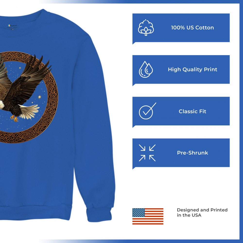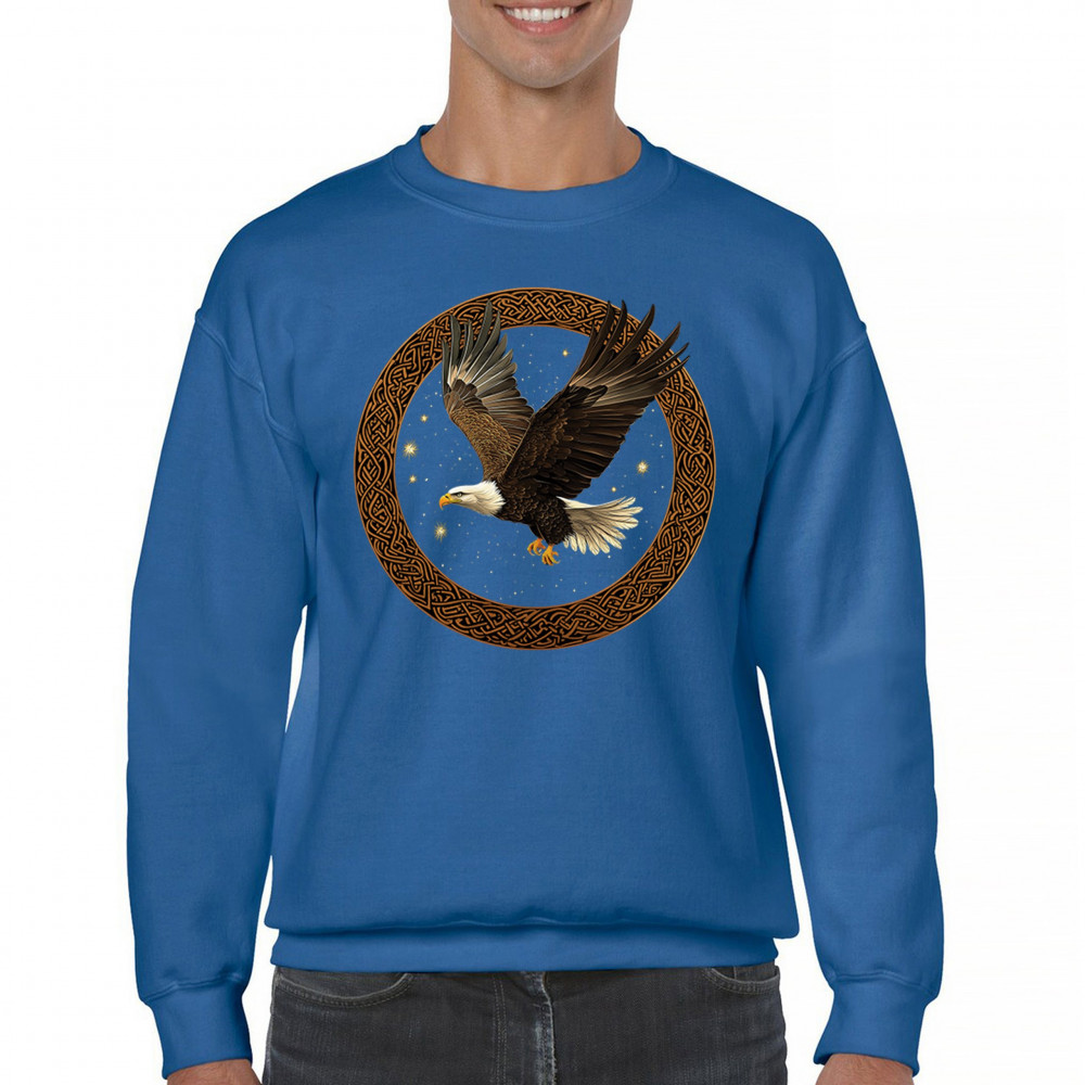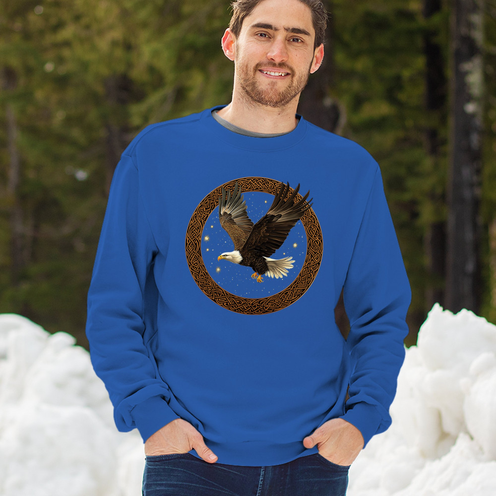This powerful bald eagle takes flight within a Celtic knotwork circle, radiating strength, independence, and cosmic energy. The glowing stars and celestial background add mystic symbolism, blending nature, tribal design, and spirituality. Perfect for patriots, spiritual seekers, and bird enthusiasts.