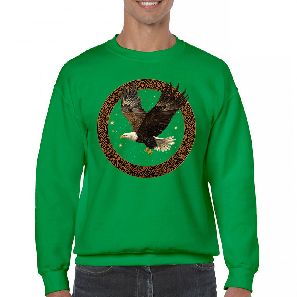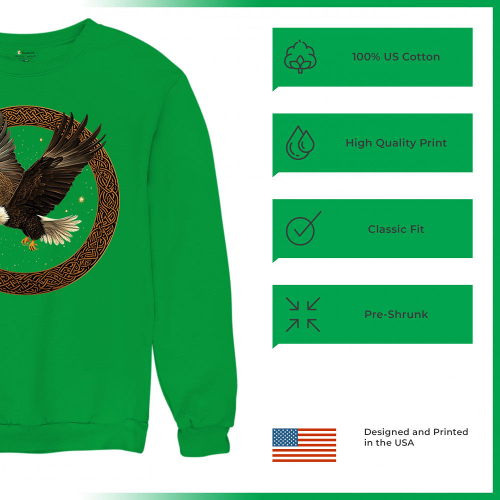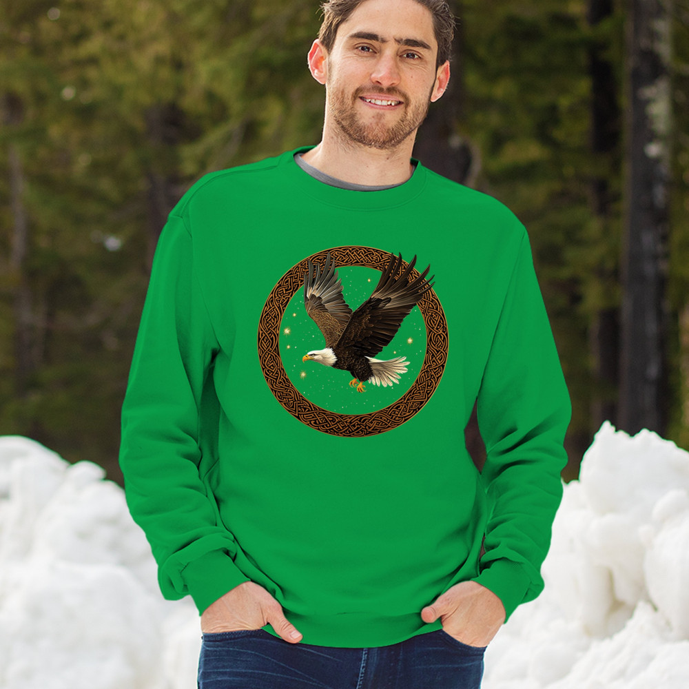 This powerful bald eagle takes flight within a Celtic knotwork circle, radiating strength, independence, and cosmic energy. The glowing stars and celestial background add mystic symbolism, blending nature, tribal design, and spirituality. Perfect for patriots, spiritual seekers, and bird enthusiasts.
