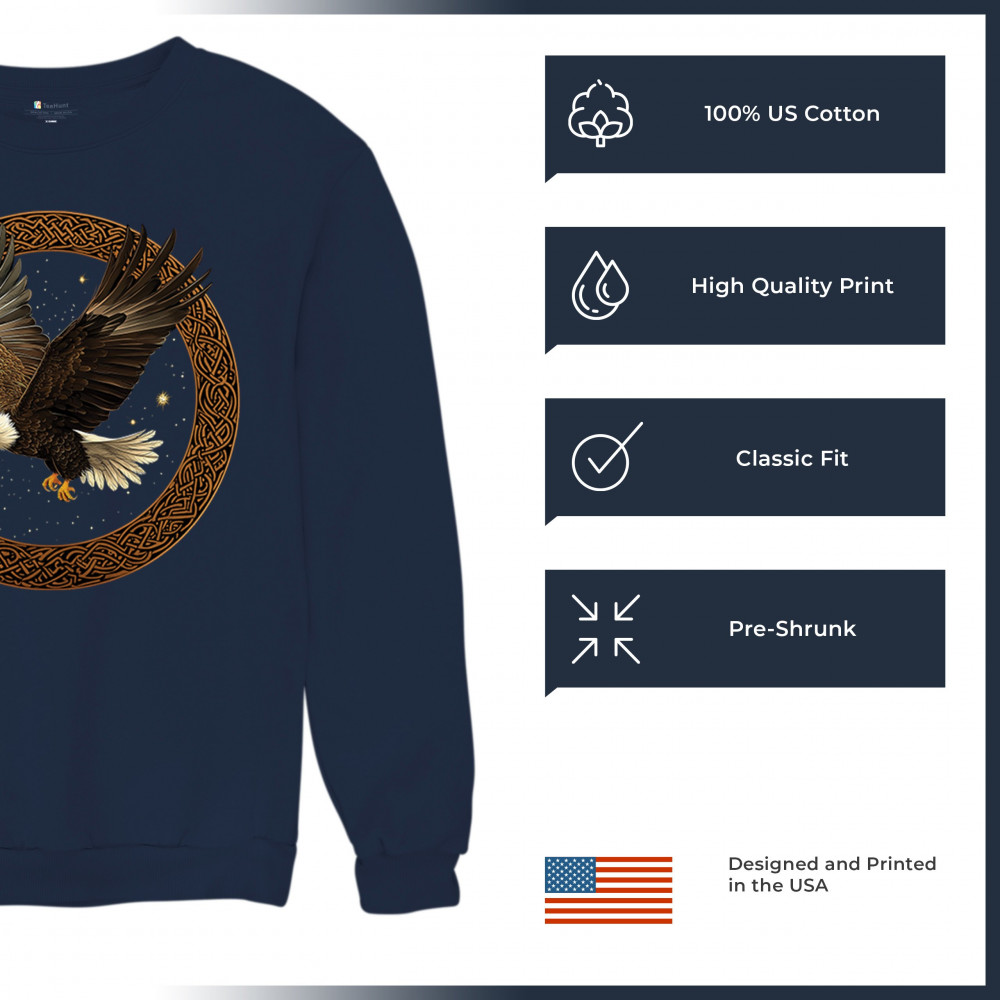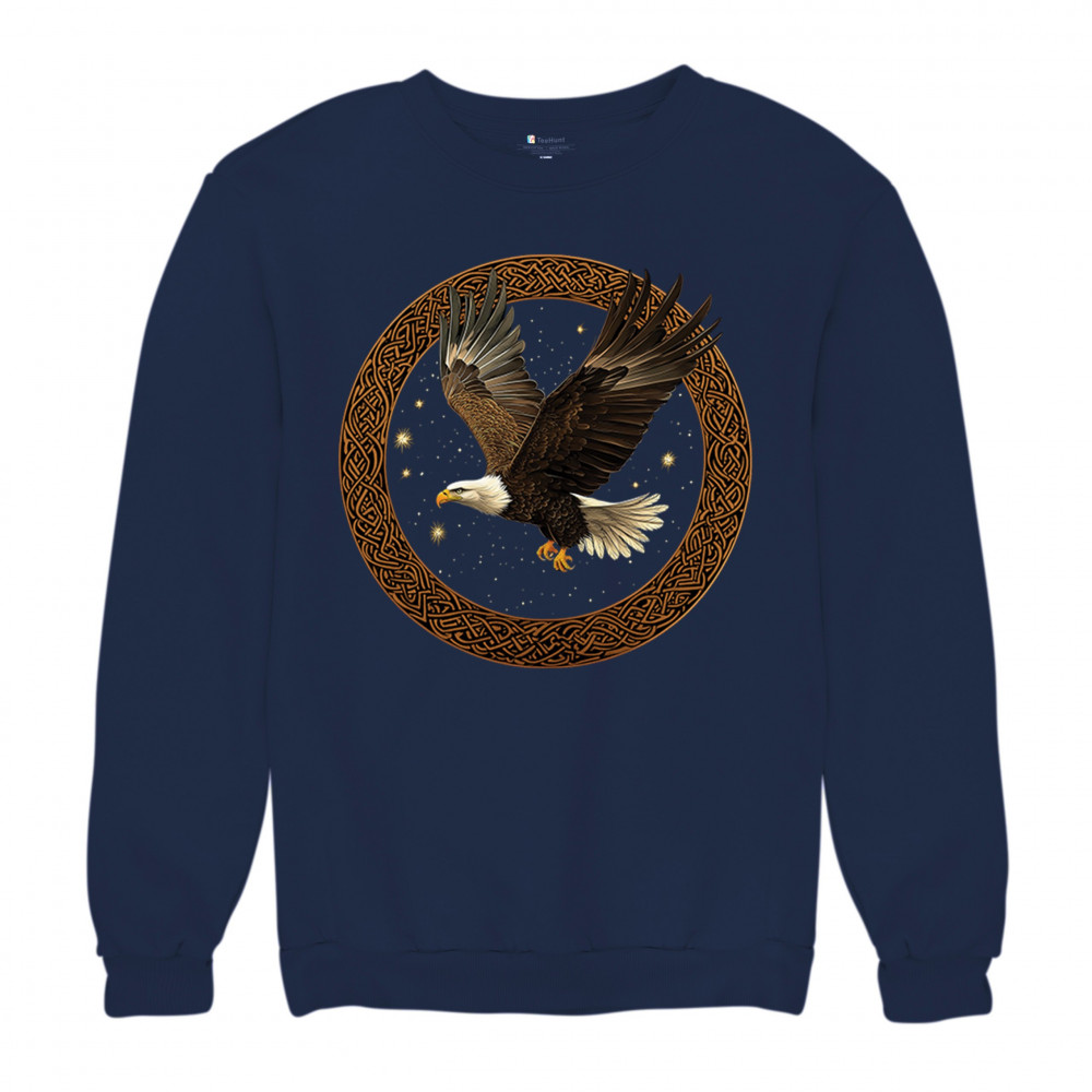 This powerful bald eagle takes flight within a Celtic knotwork circle, radiating strength, independence, and cosmic energy. The glowing stars and celestial background add mystic symbolism, blending nature, tribal design, and spirituality. Perfect for patriots, spiritual seekers, and bird enthusiasts.