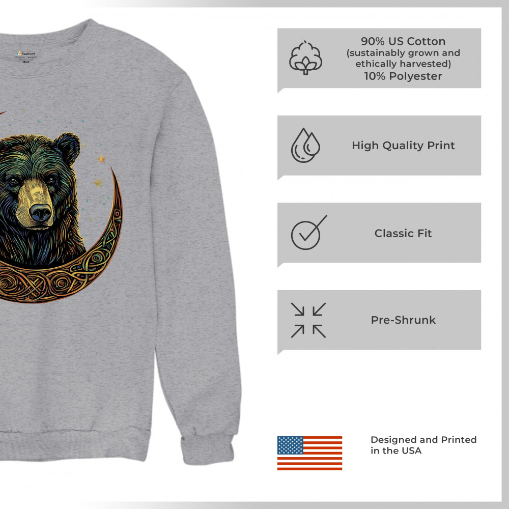 Mystical bear and Celtic moon design—perfect for nature lovers, stargazers, folklore fans, and spiritual seekers into tribal and lunar art.