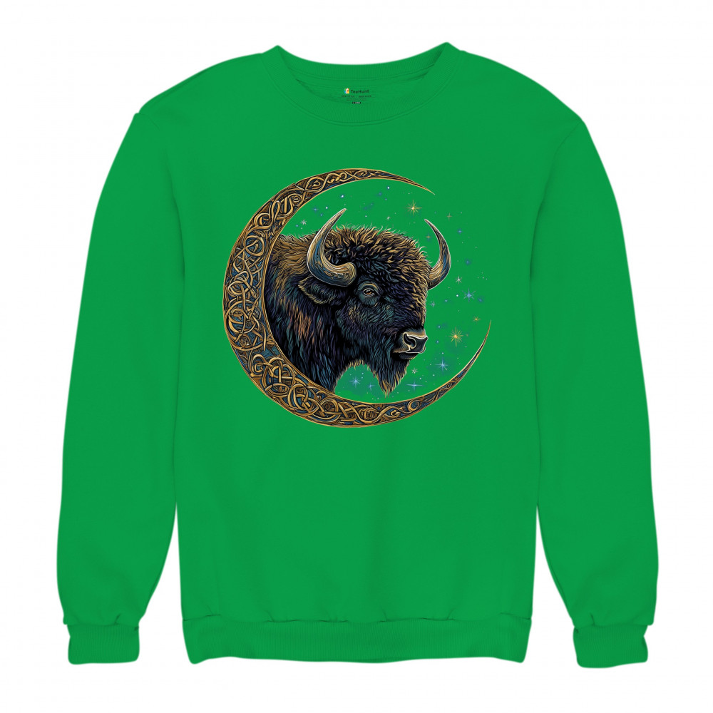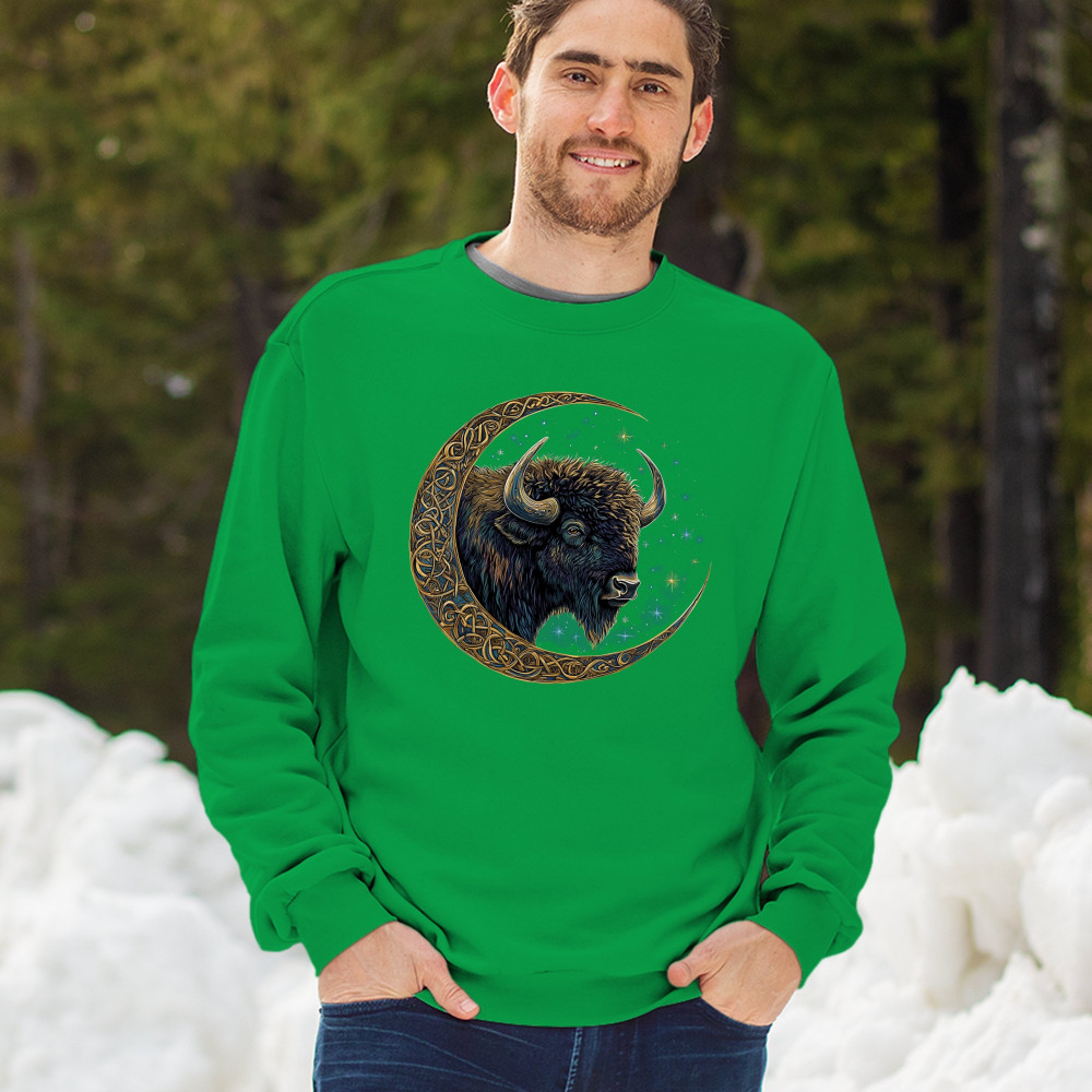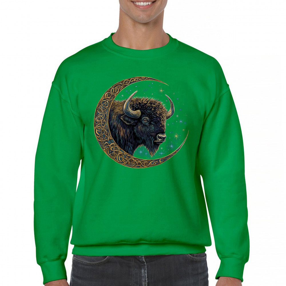 Mystical bison in Celtic moon—perfect for spiritual seekers, art fans, stargazers, and lovers of nature, tribal design, and cosmic energy.