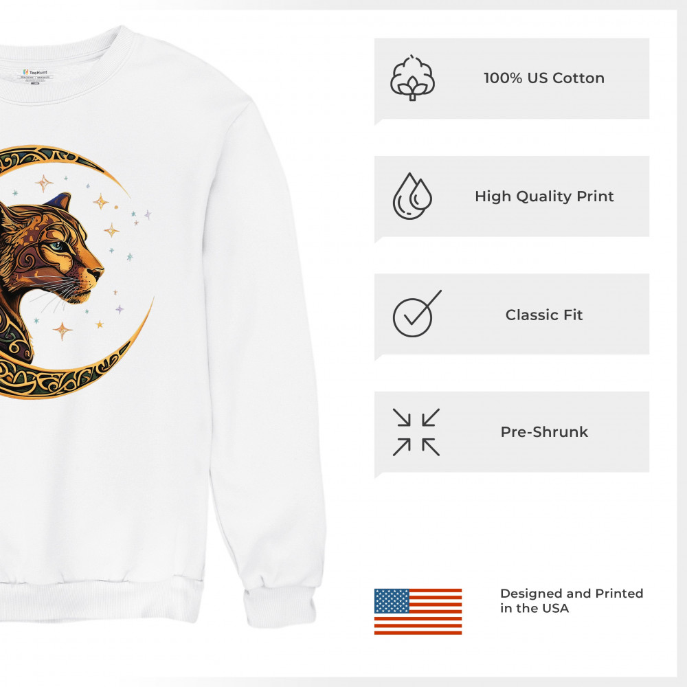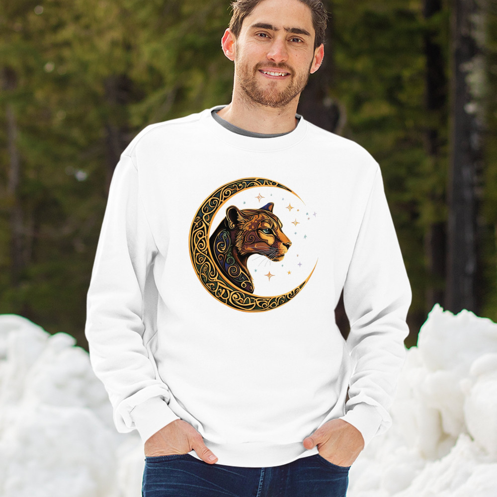 Mystical and elegant, this celestial leopard design merges wild animal strength with spiritual energy. Framed by a golden Celtic crescent moon and set against a starlit sky, it captures themes of nature, intuition, tribal symbolism, fantasy, and feminine power. Ideal for astrology fans, animal lovers, and seekers of cosmic connection.