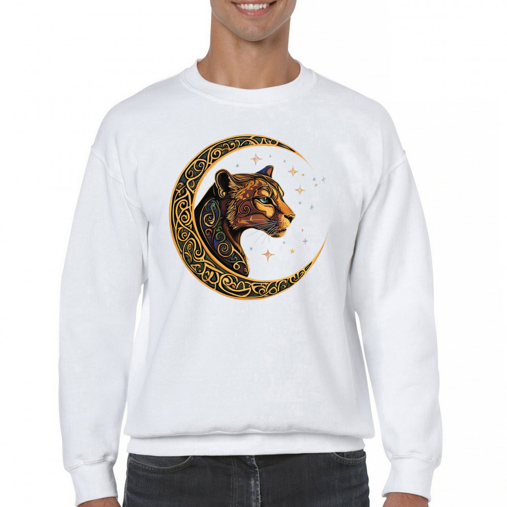 Leopard in Celtic moon with stars—mystical design for fantasy art fans, astrology lovers, and spiritual souls drawn to wild cosmic energy.