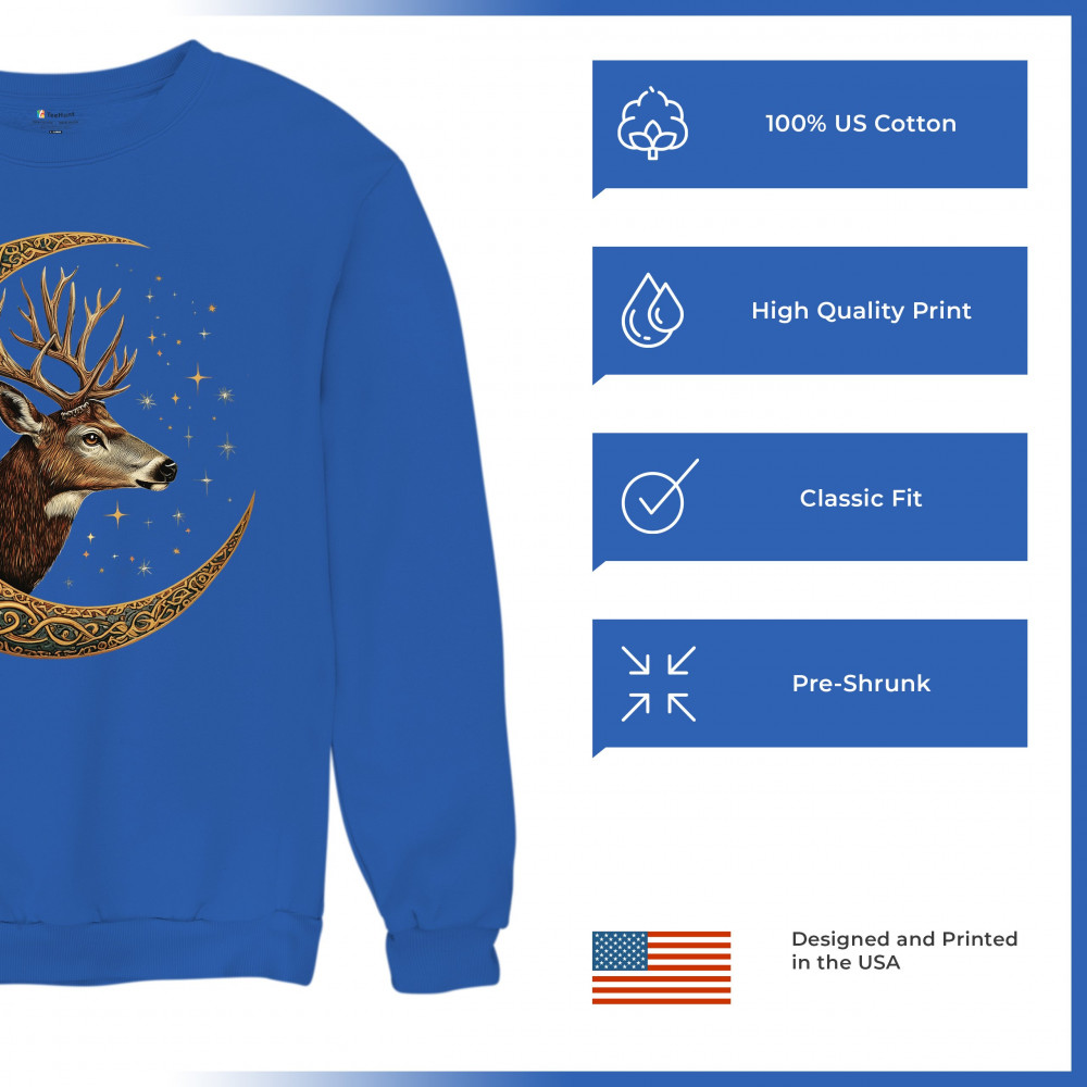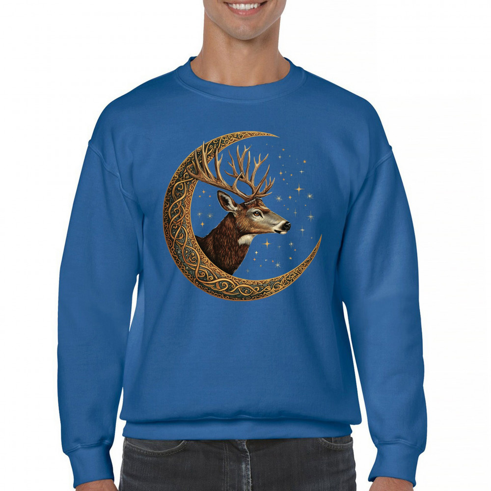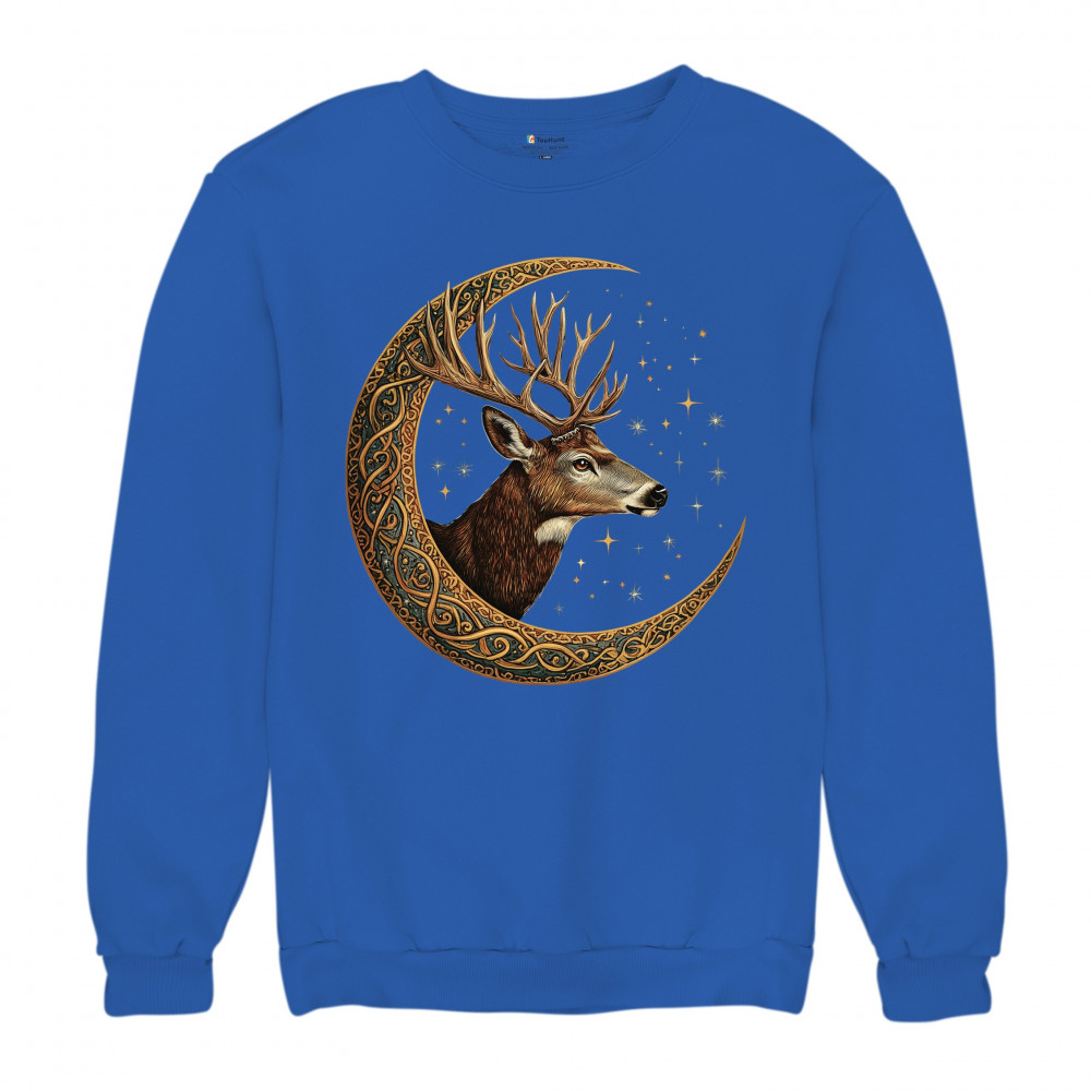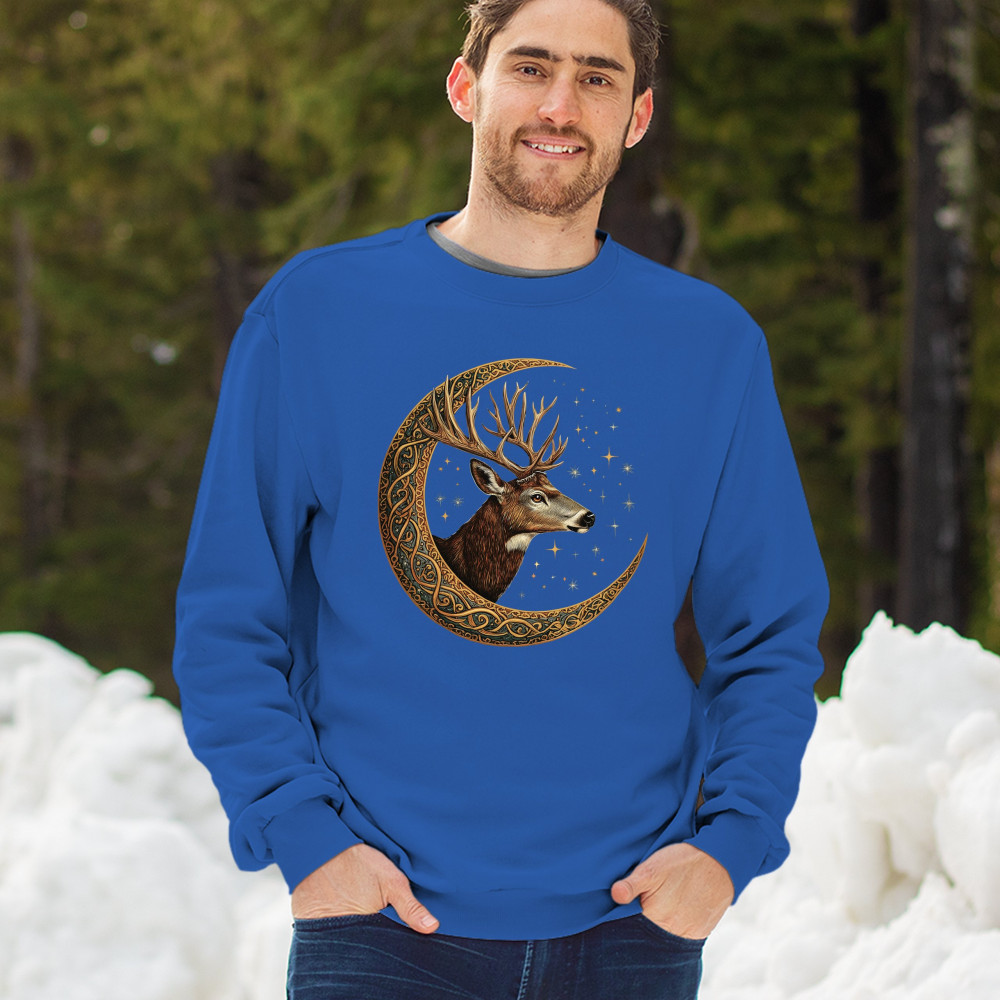 Majestic deer in Celtic moon with stars—symbol of protection, nature, and cosmic wisdom. A mystical gift for hunters, druids, and forest lovers.