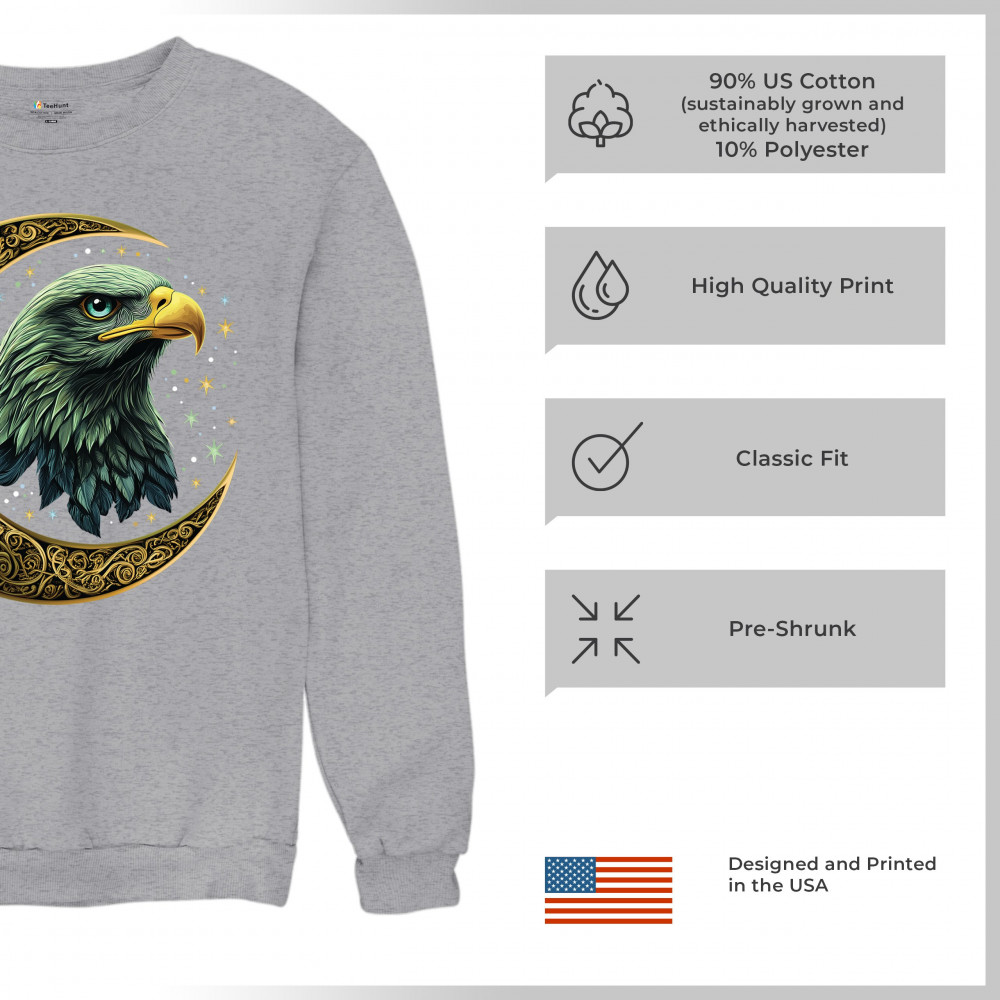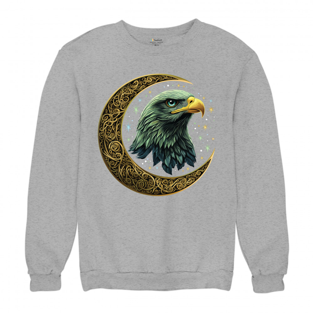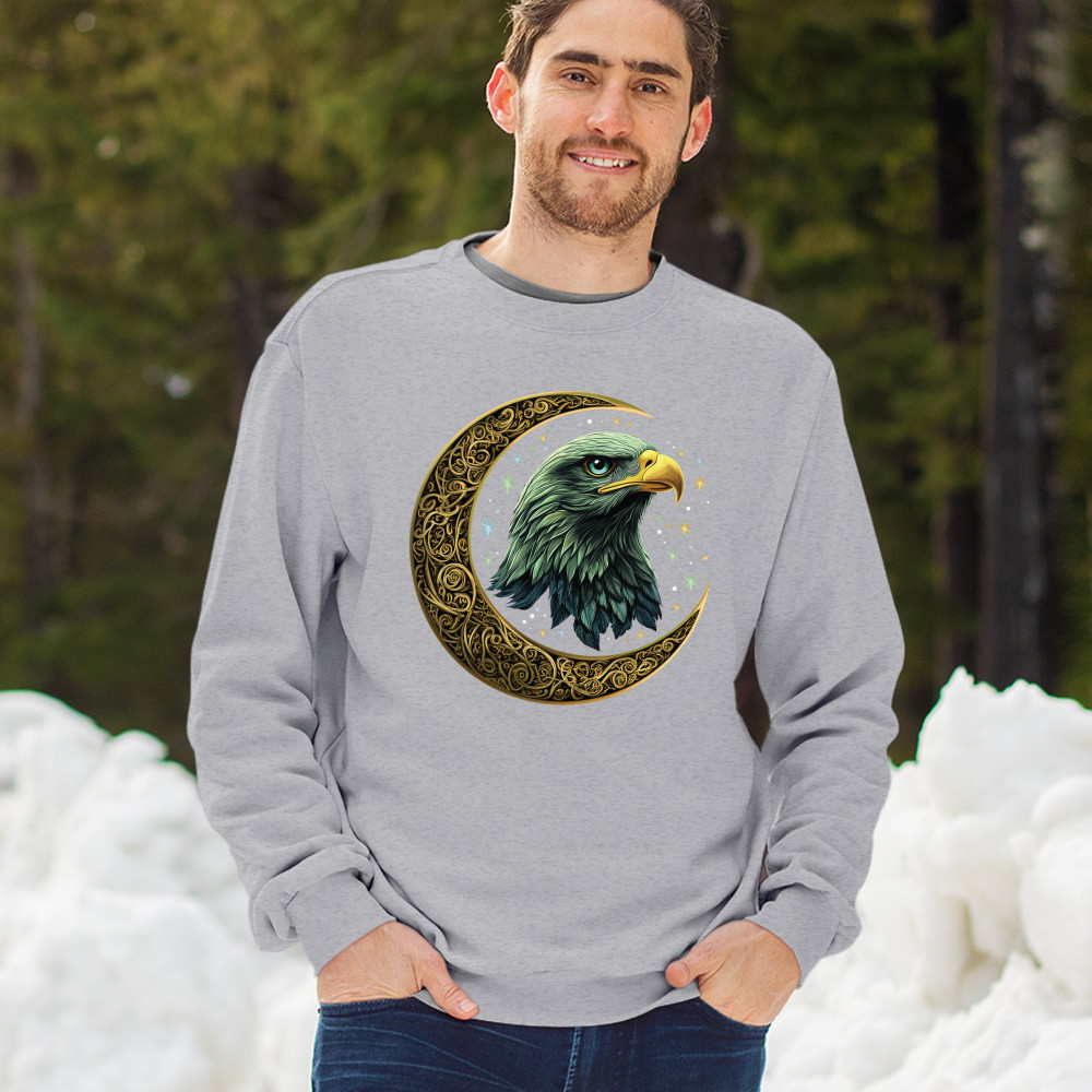Majestic eagle in golden Celtic moon with stars—symbol of strength, vision, and freedom. Perfect for patriots, spiritual seekers, and nature lovers.