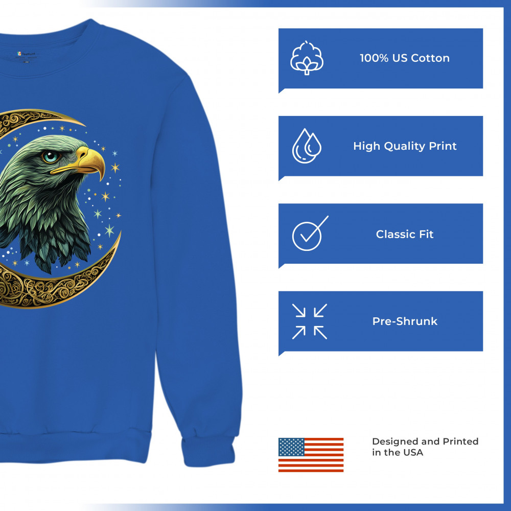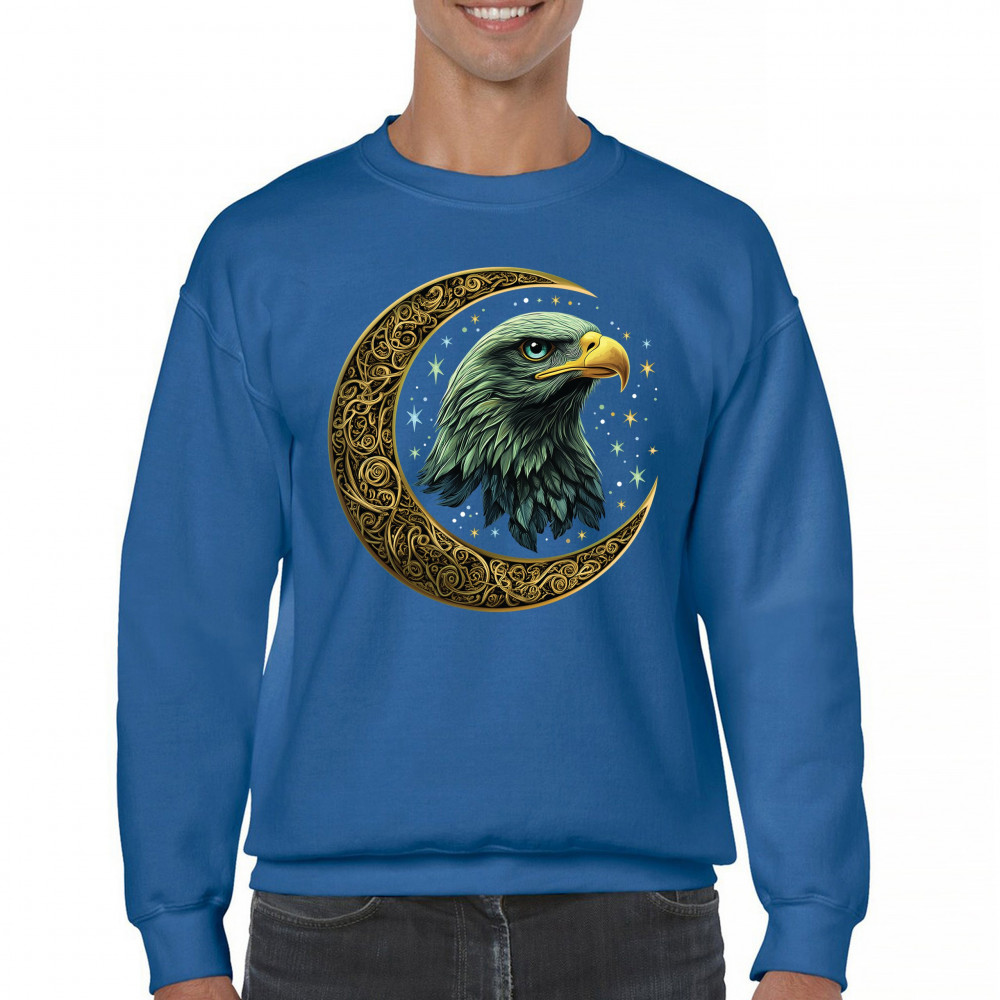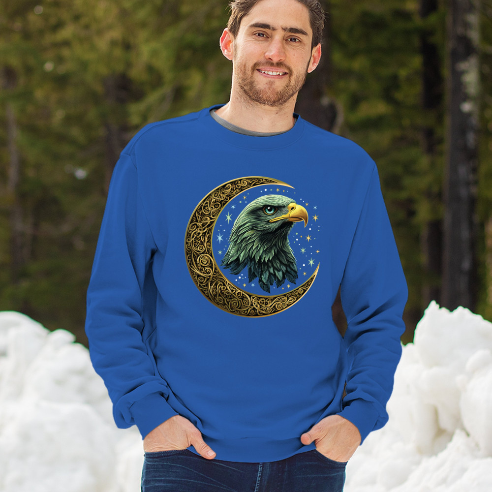 Majestic eagle in golden Celtic moon with stars—symbol of strength, vision, and freedom. Perfect for patriots, spiritual seekers, and nature lovers.