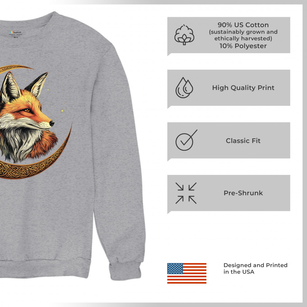 Embrace the spirit of the forest with this striking red fox framed by a golden Celtic crescent moon. The design blends animal symbolism with cosmic wonder, showcasing intuition, cleverness, and spiritual insight. A perfect match for nature lovers, folklore fans, mystics, and metaphysical art enthusiasts.