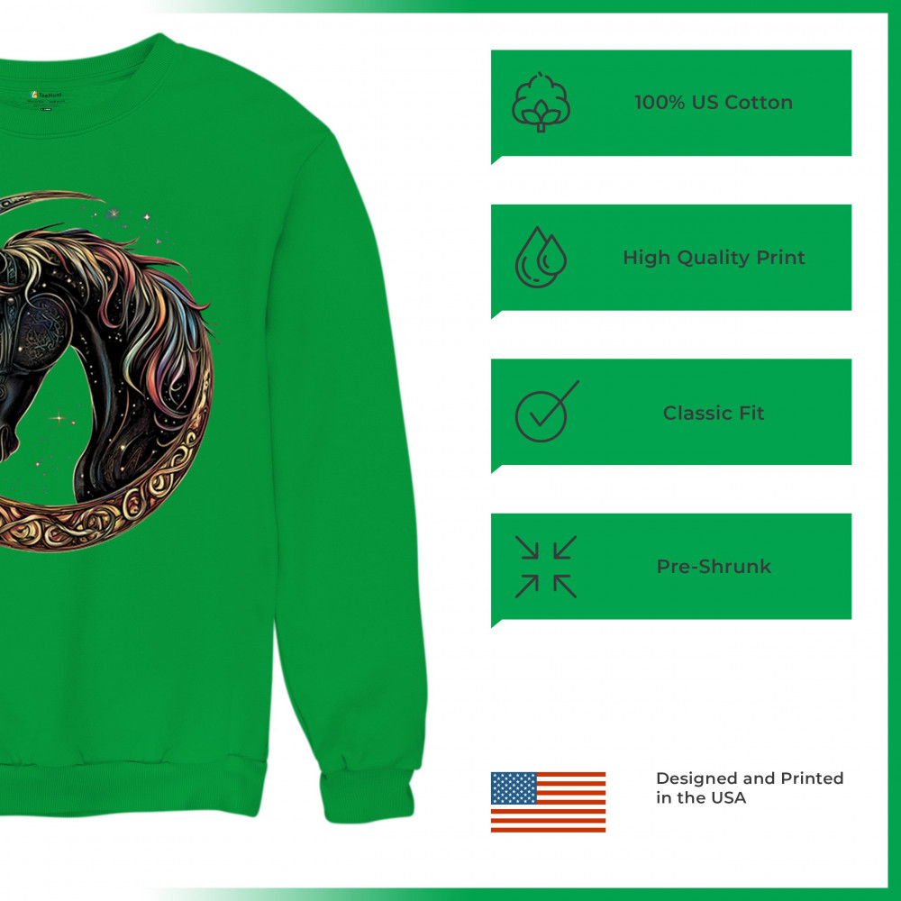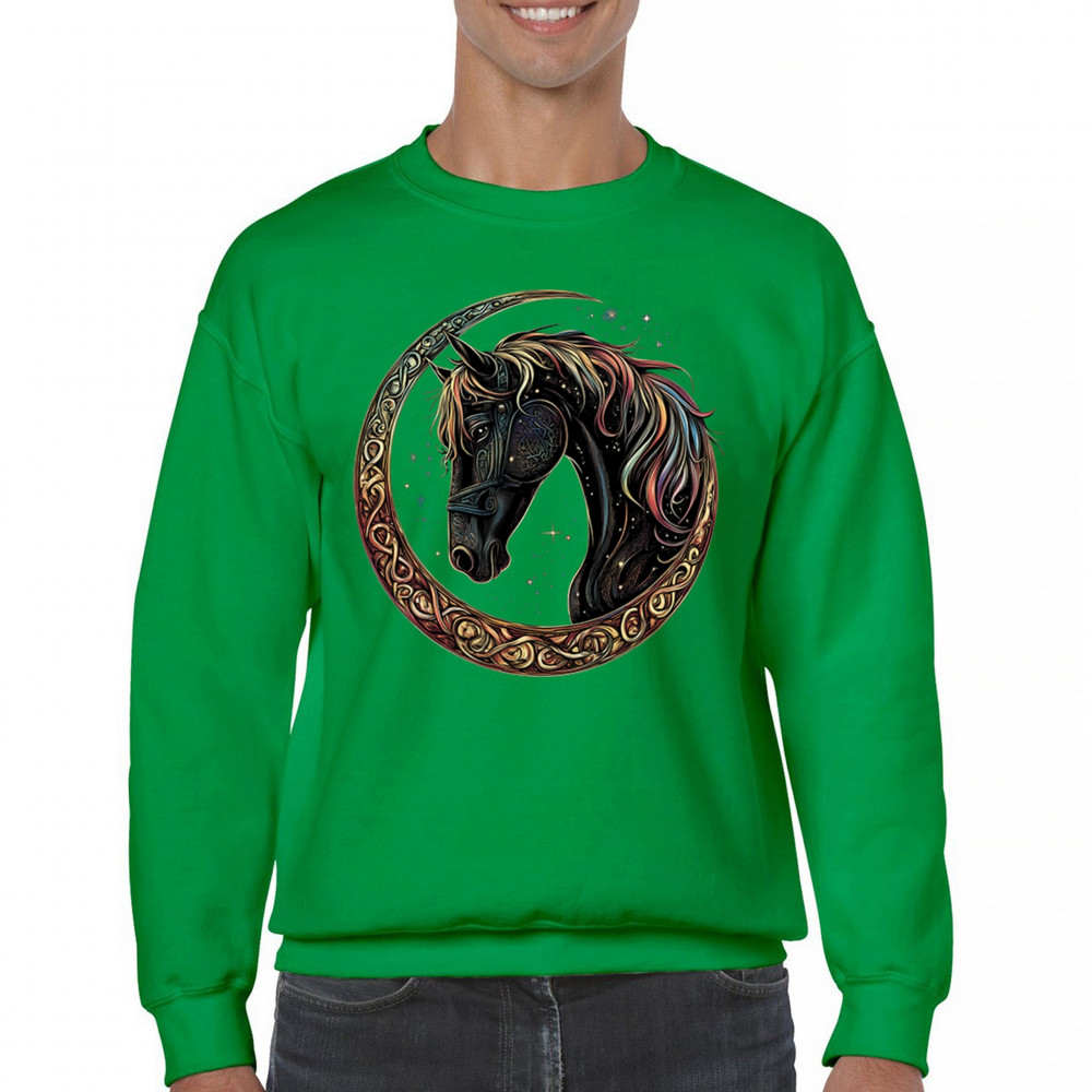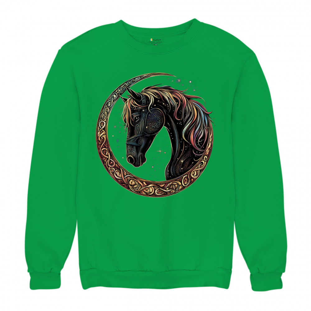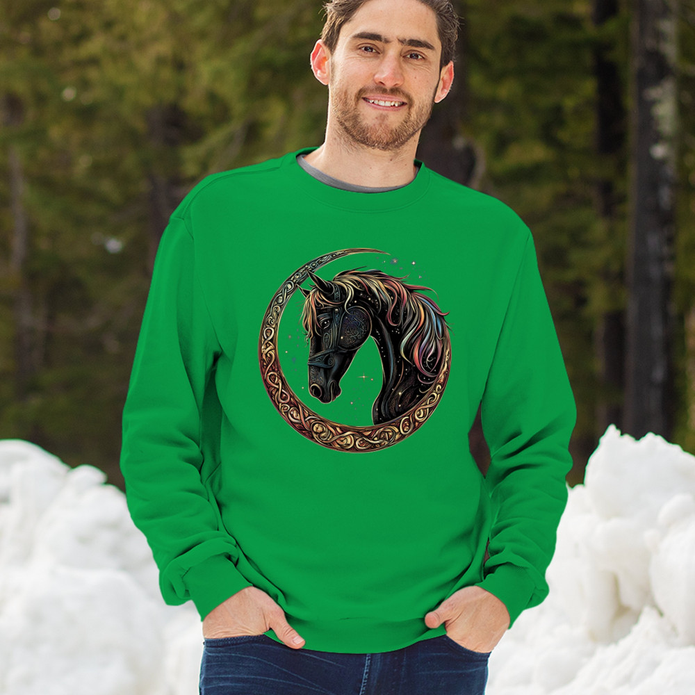 CELTIC MOON HORSE sweatshirt north mystical spiritual nordic cosmic crewneck green