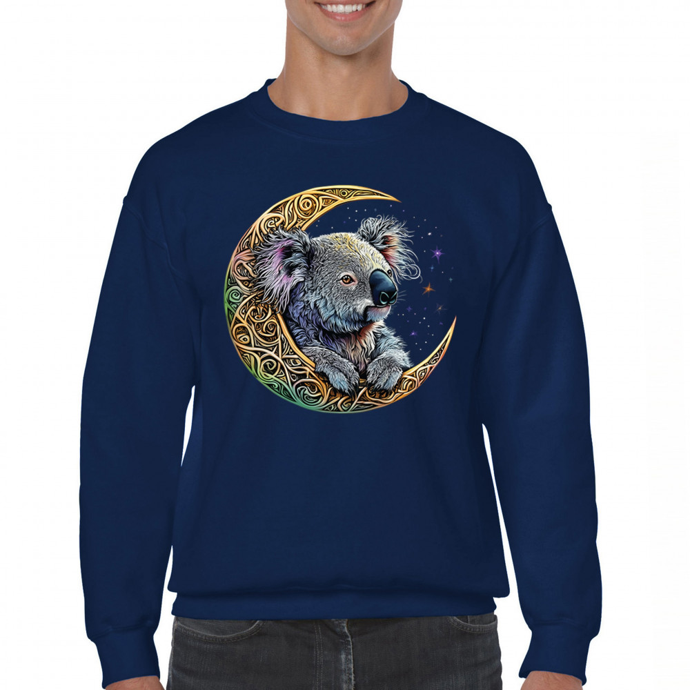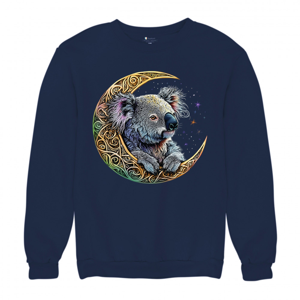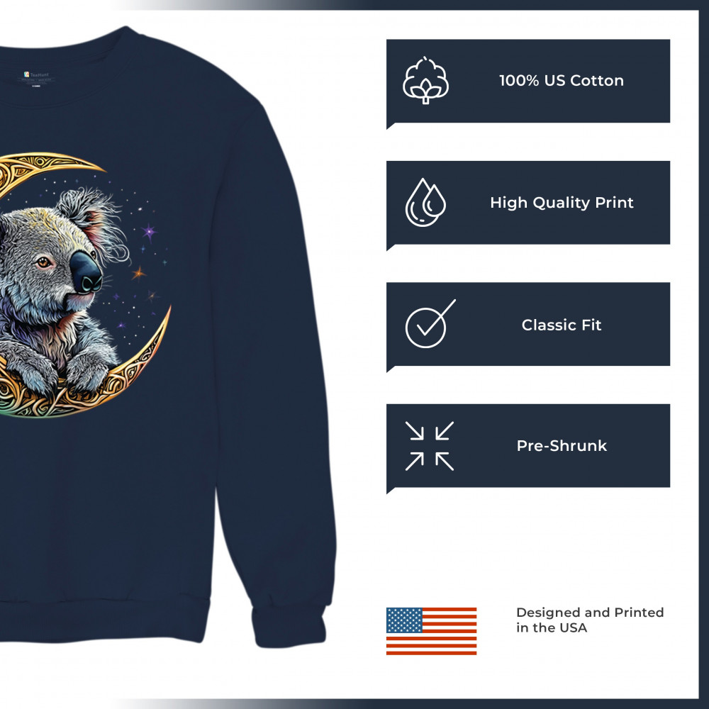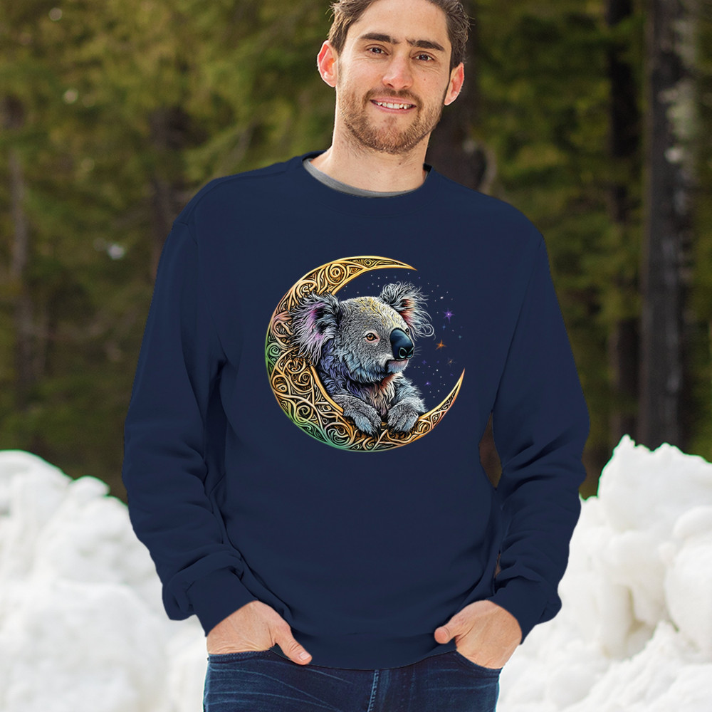 Koala resting in Celtic crescent moon with cosmic sky. A peaceful design for nature lovers, spiritual thinkers, and fantasy art fans.
