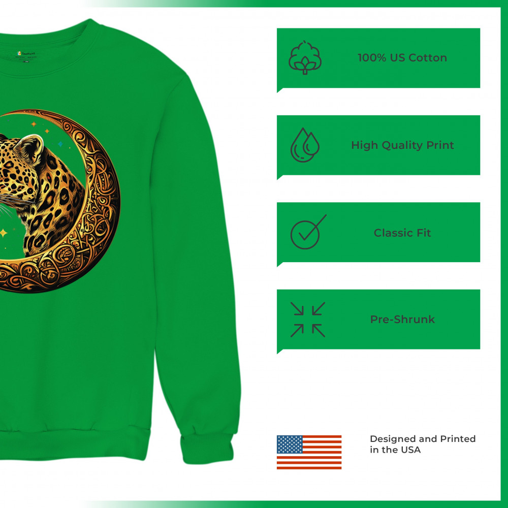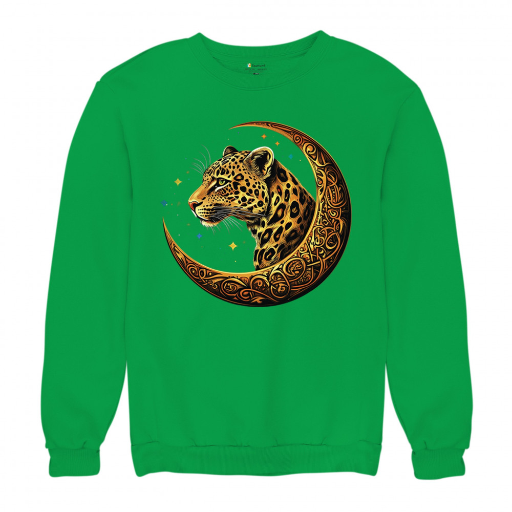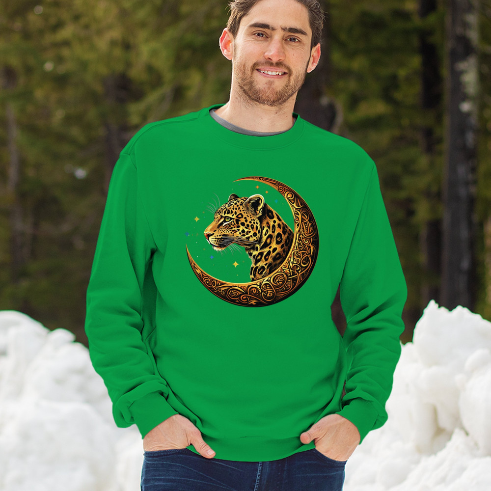 CELTIC MOON LEOPARD sweatshirt vivid mystic wildlife nordic valhalla crewneck green