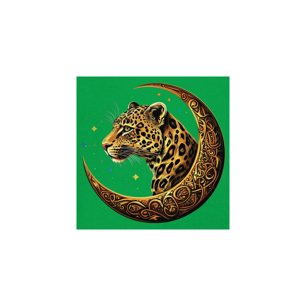 Unleash wild energy and spiritual symbolism with this bold leopard design set inside a golden Celtic crescent moon. A cosmic starry background amplifies its mystical vibe, symbolizing agility, independence, and awareness. Perfect for big cat lovers, jungle animal fans, and seekers of fantasy or tribal-inspired art.