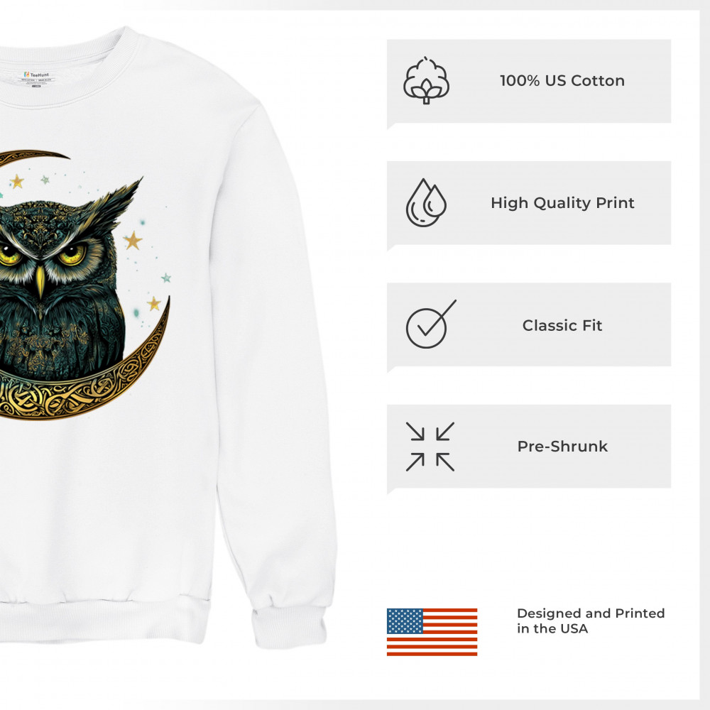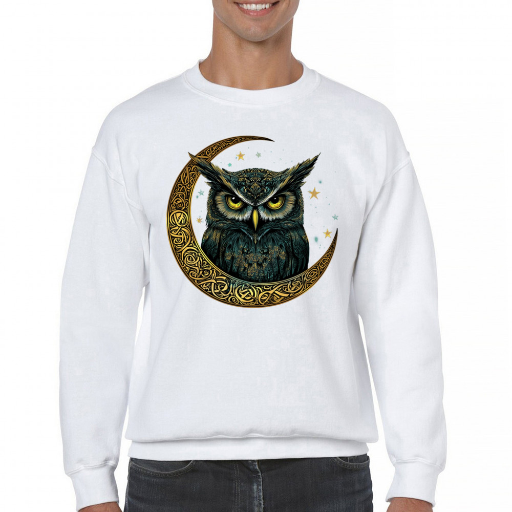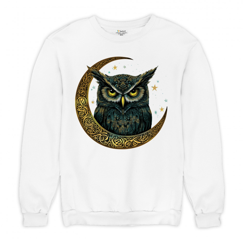 Cosmic owl in Celtic crescent moon—symbol of wisdom, night mystery, and spirit. Perfect for mystics, owl lovers, and fantasy fans.