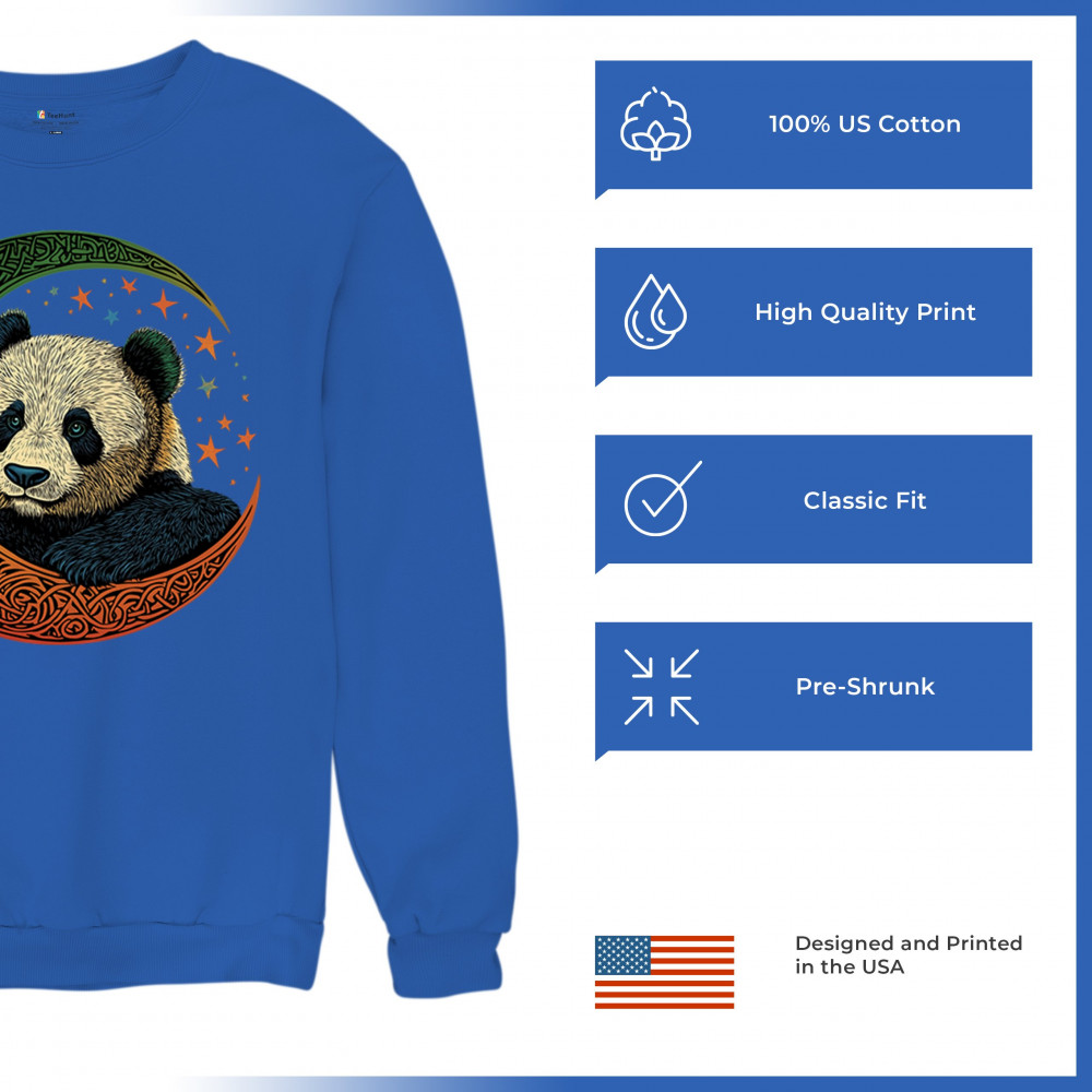 Peaceful panda in Celtic crescent moon design—symbol of harmony, balance, and spiritual calm for nature lovers, mystics, and gentle souls.