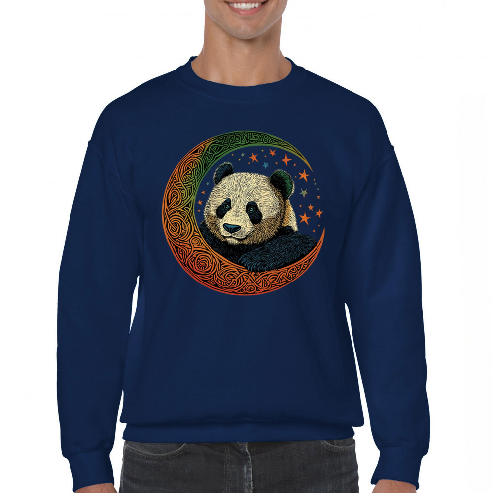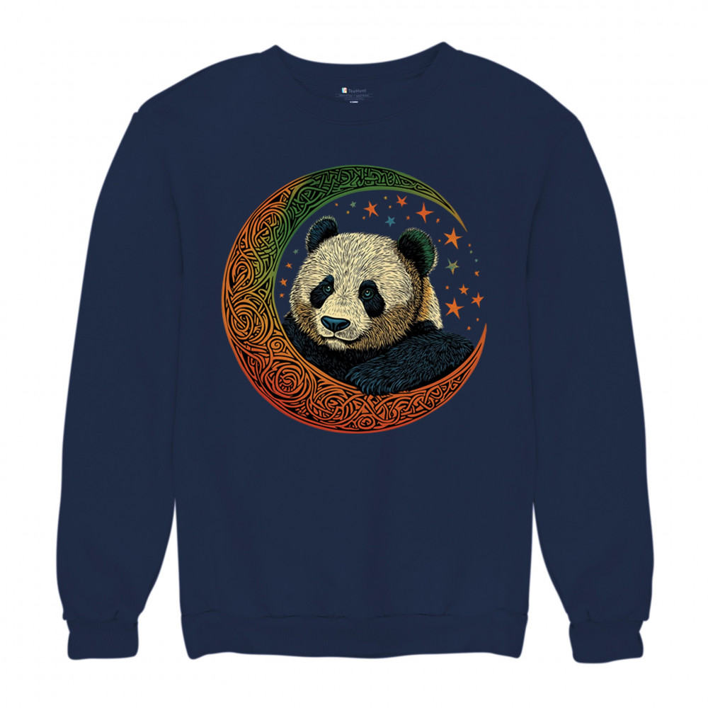Peaceful panda in Celtic crescent moon design—symbol of harmony, balance, and spiritual calm for nature lovers, mystics, and gentle souls.