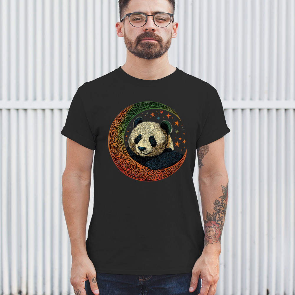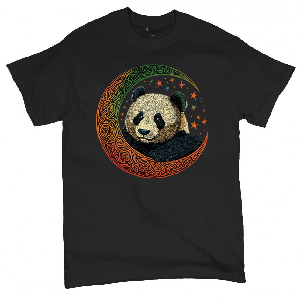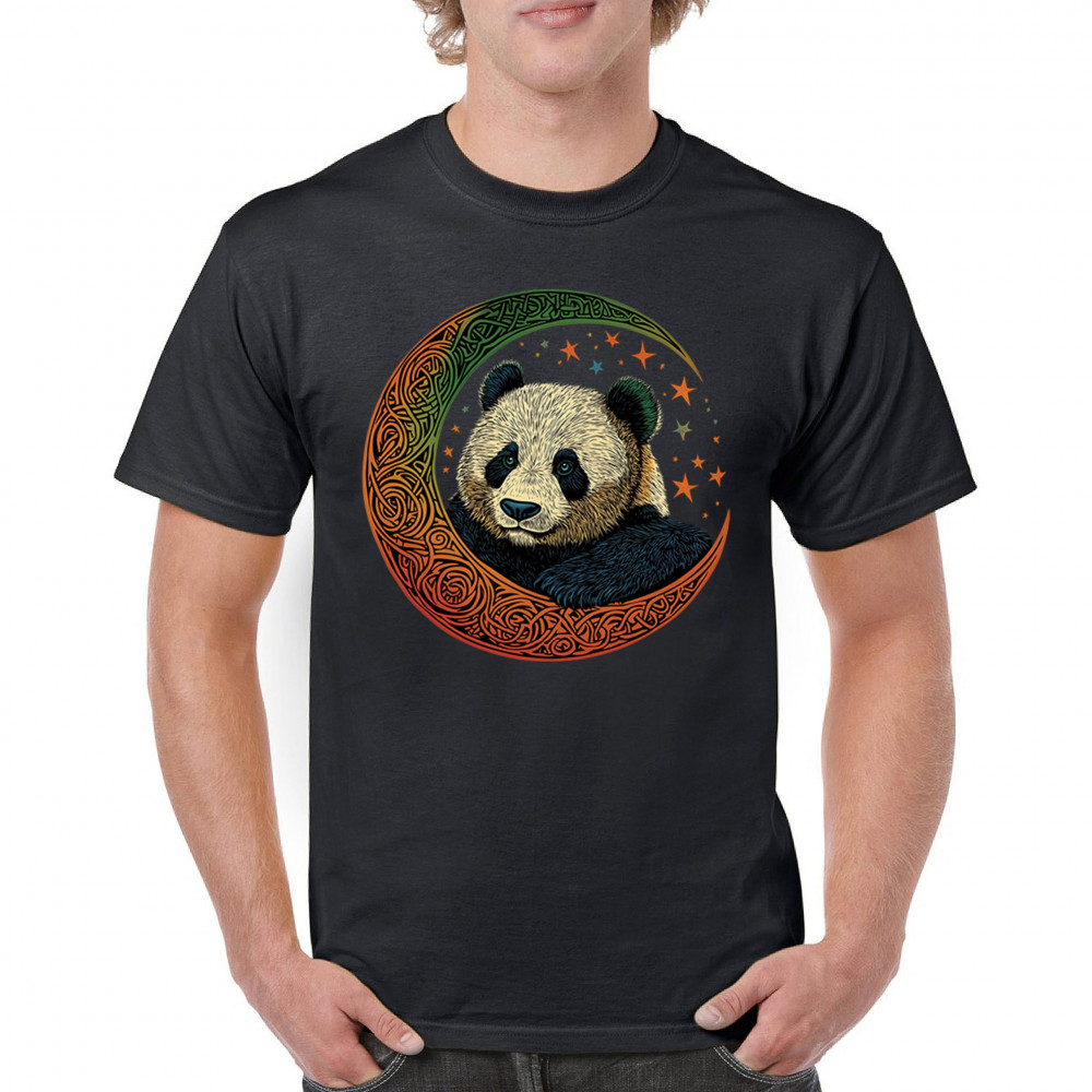 CELTIC MOON PANDA t-shirt peaceful adorable animal lunar nature men's tee black