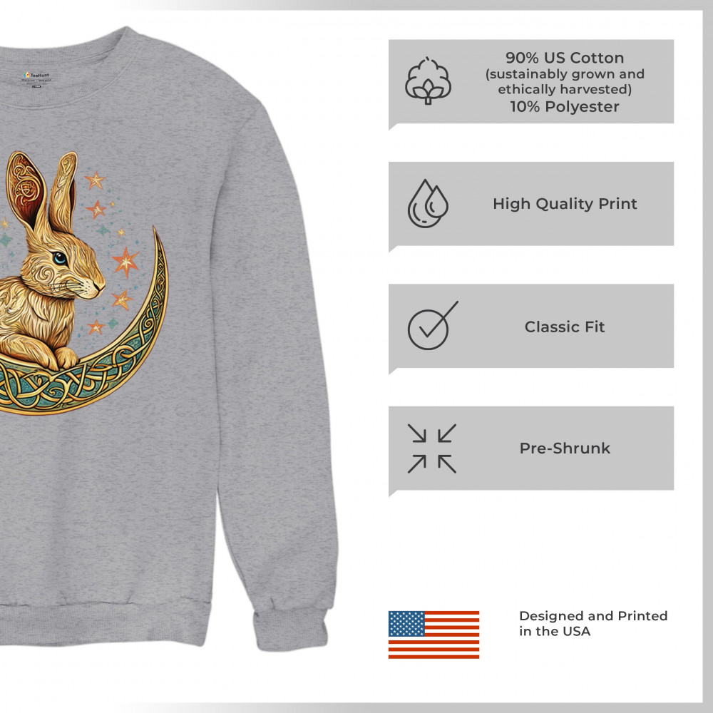 Mystical rabbit in Celtic moon—symbolizing intuition, rebirth, and spring energy. Ideal for fantasy lovers, mystics, and nature fans.