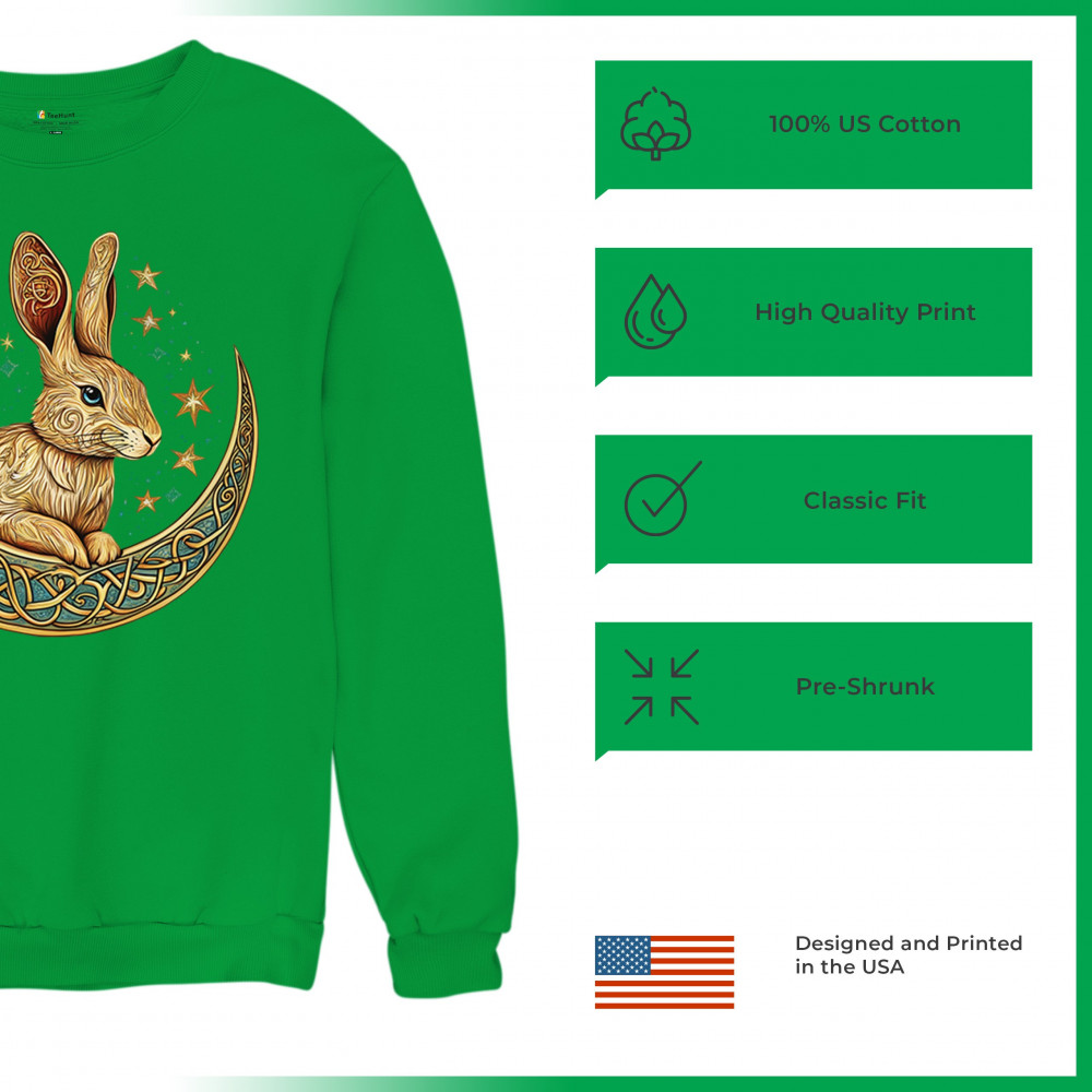 Mystical rabbit in Celtic moon—symbolizing intuition, rebirth, and spring energy. Ideal for fantasy lovers, mystics, and nature fans.