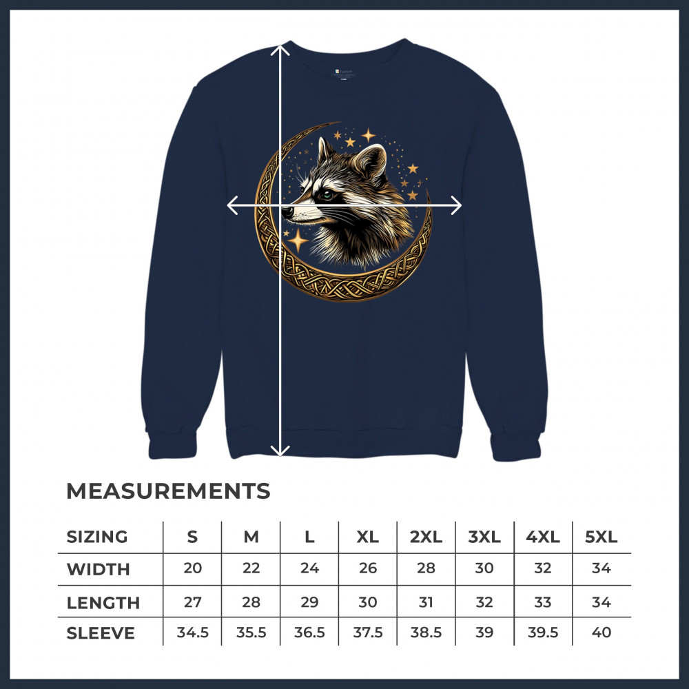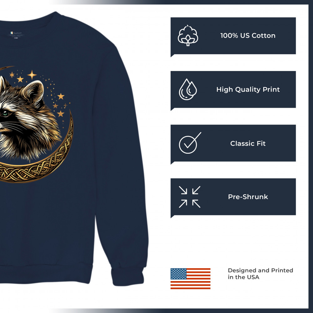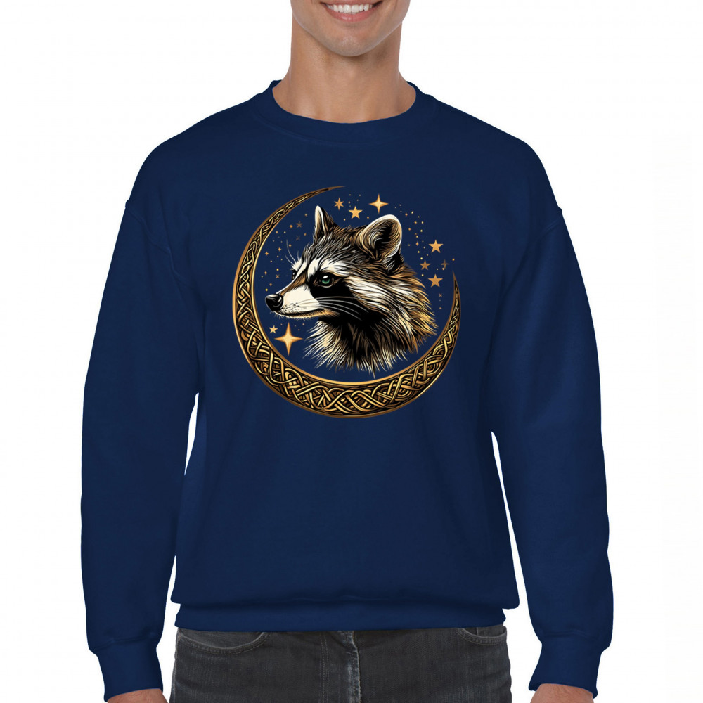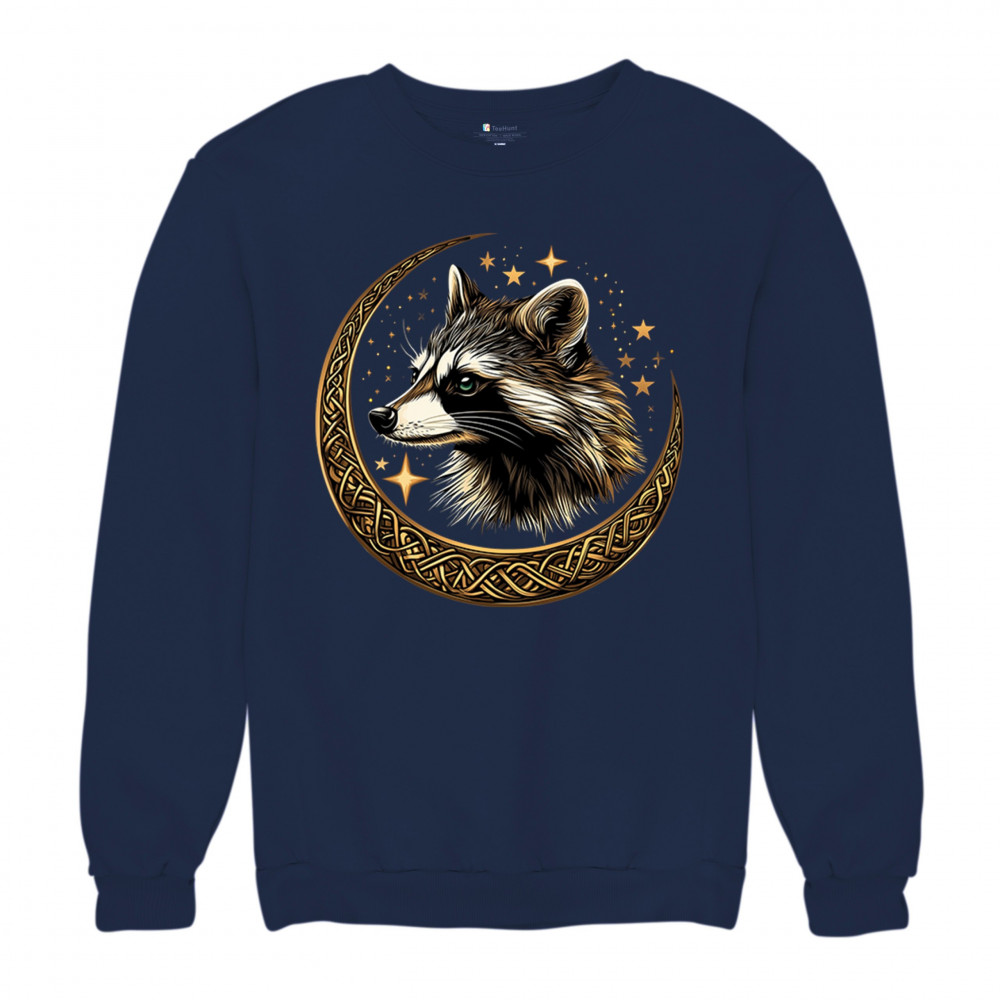 Cosmic raccoon design in Celtic moon. Symbol of adaptability, mystery, and spiritual intelligence. A perfect gift for wild and curious souls.
