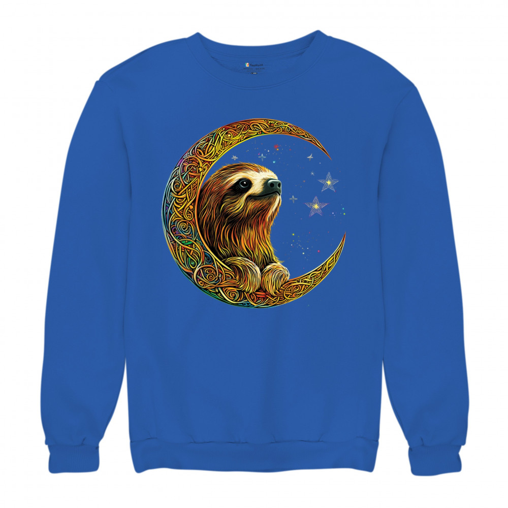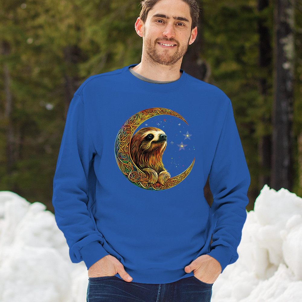 Celebrate peace and presence with this stunning sloth design cradled in a gold Celtic crescent moon. Surrounded by a vibrant starry sky, the image blends jungle whimsy with tribal patterns and mystical vibes. A perfect design for lovers of fantasy animals, mindfulness, and slow living. A beautiful tribute to spiritual stillness and cosmic calm.