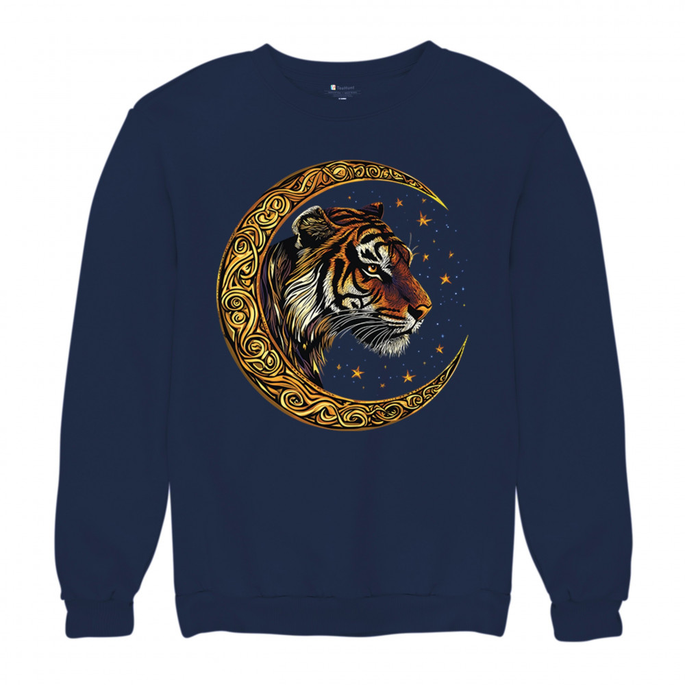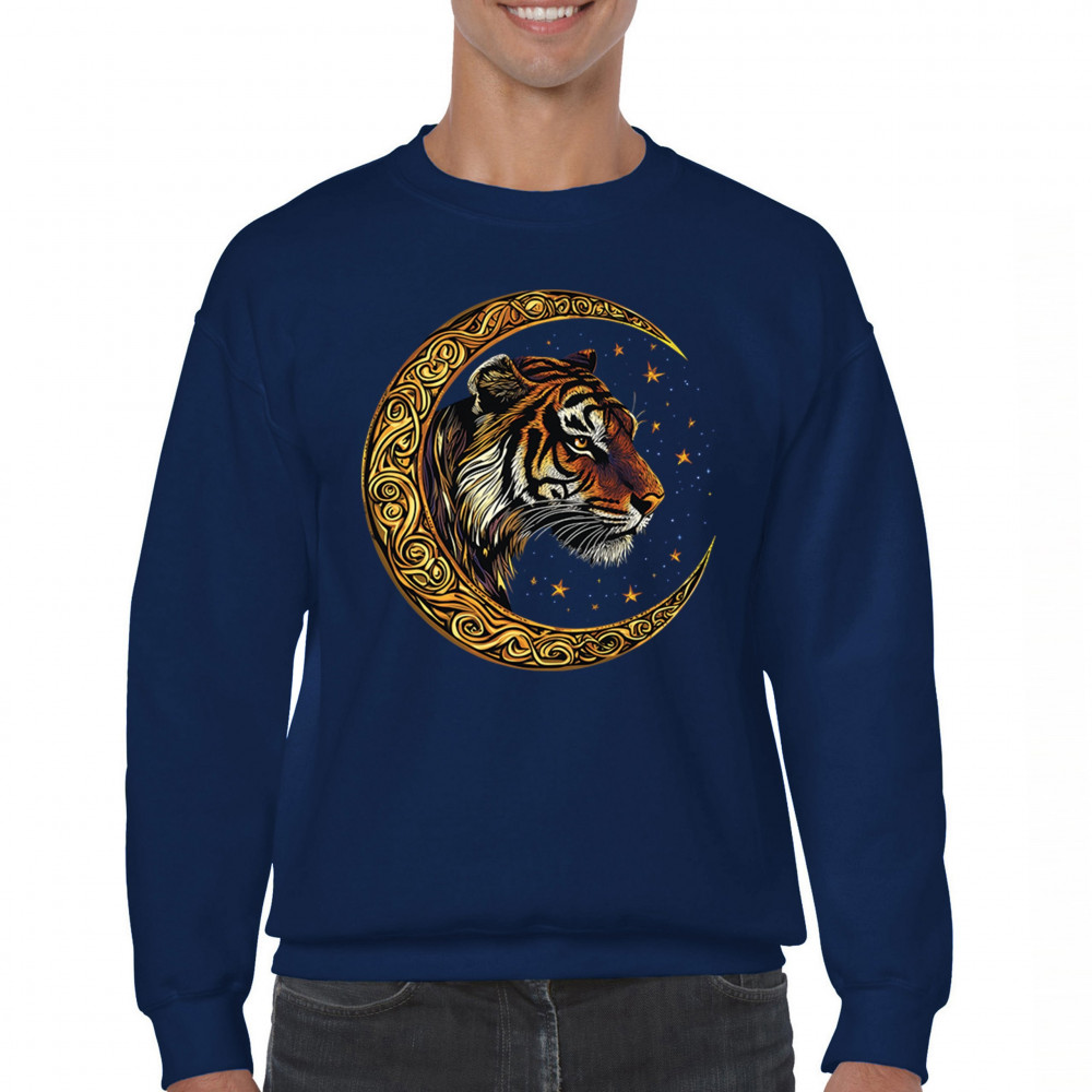 CELTIC MOON TIGER sweatshirt vivid mystical jungle beast spiritual cat crewneck navy blue