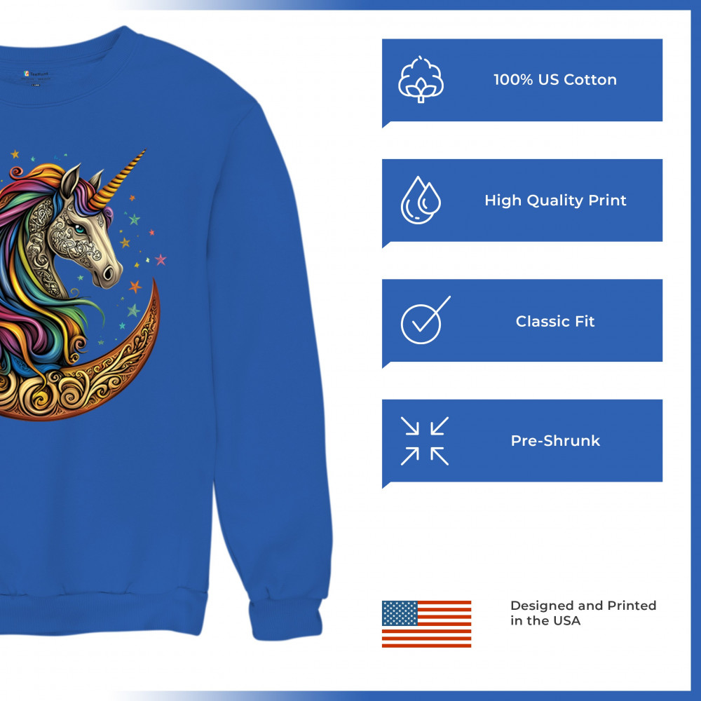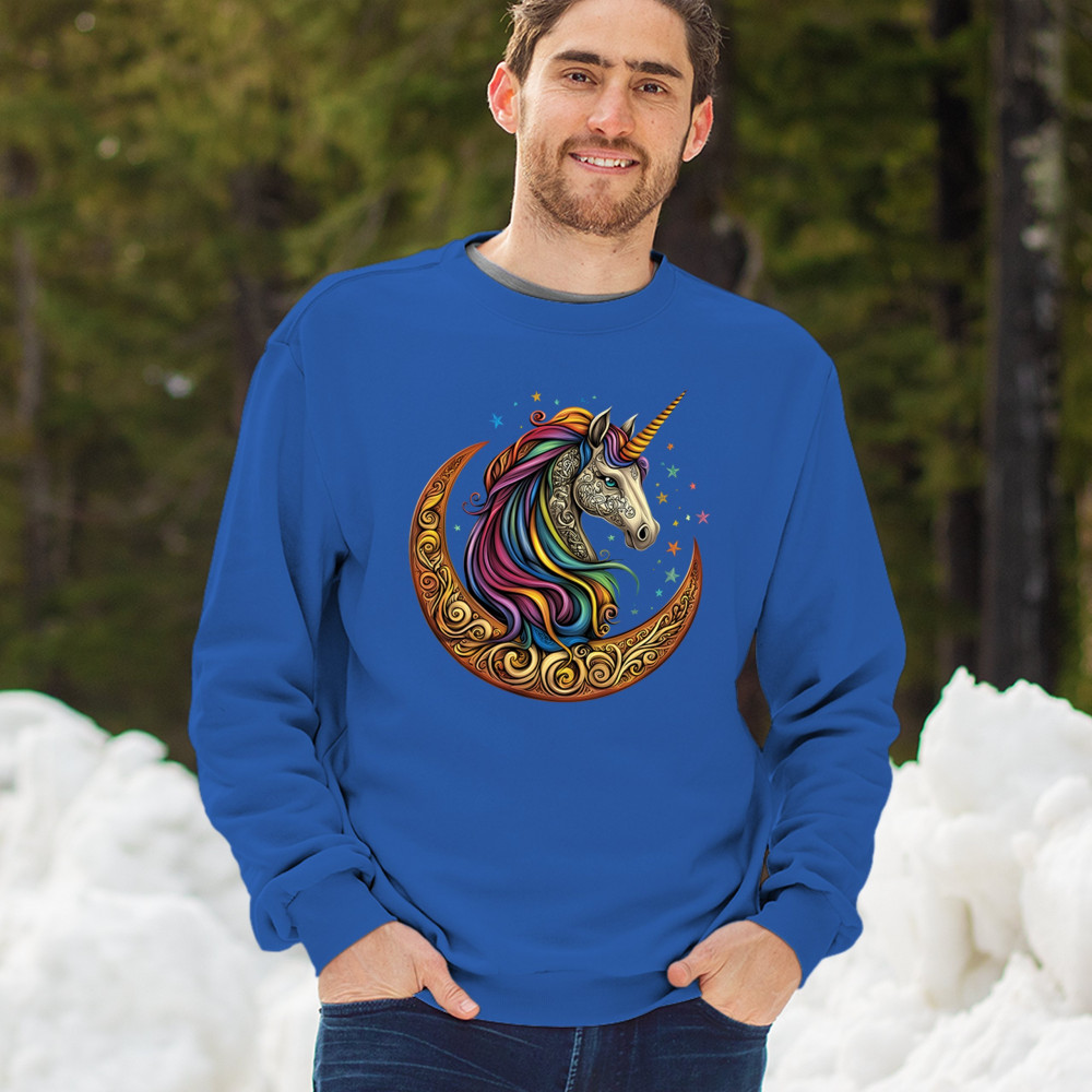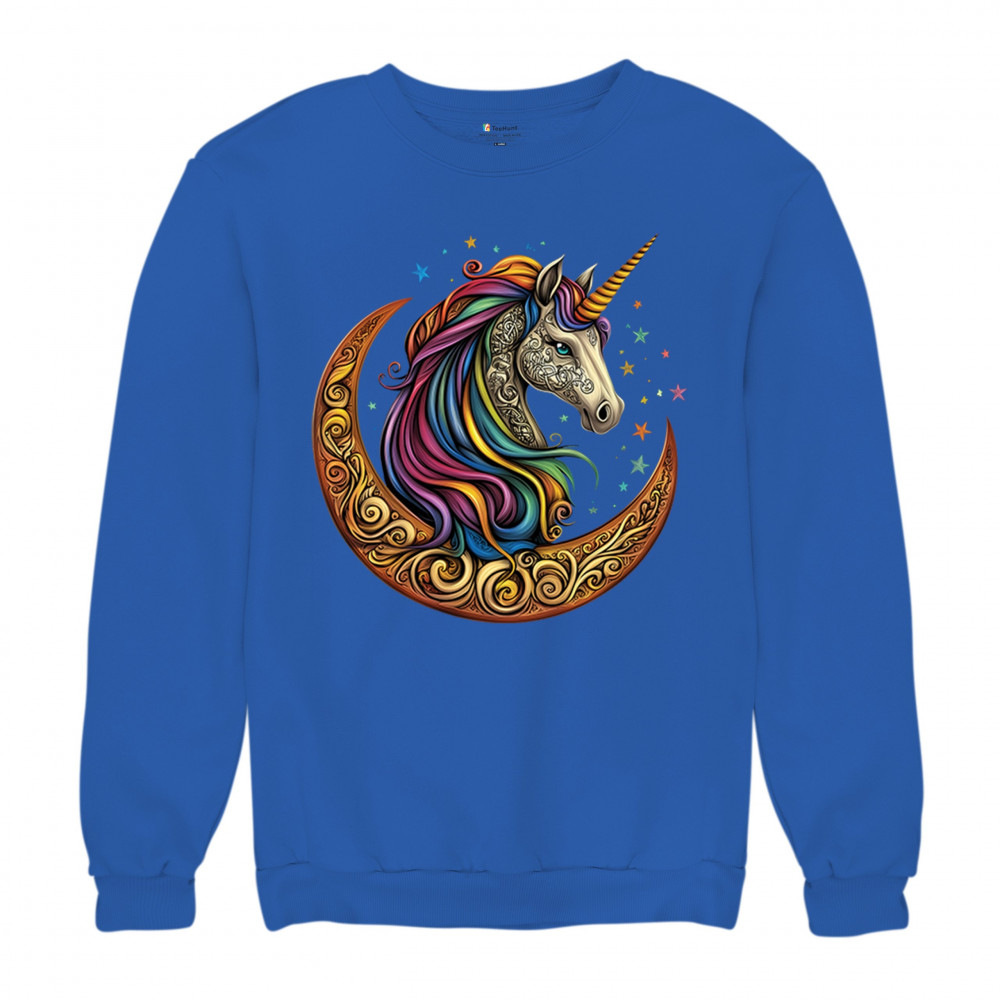Rainbow-maned unicorn in golden Celtic moon design—perfect for fantasy lovers, dreamers, and unicorn fans who believe in magic and spirit.