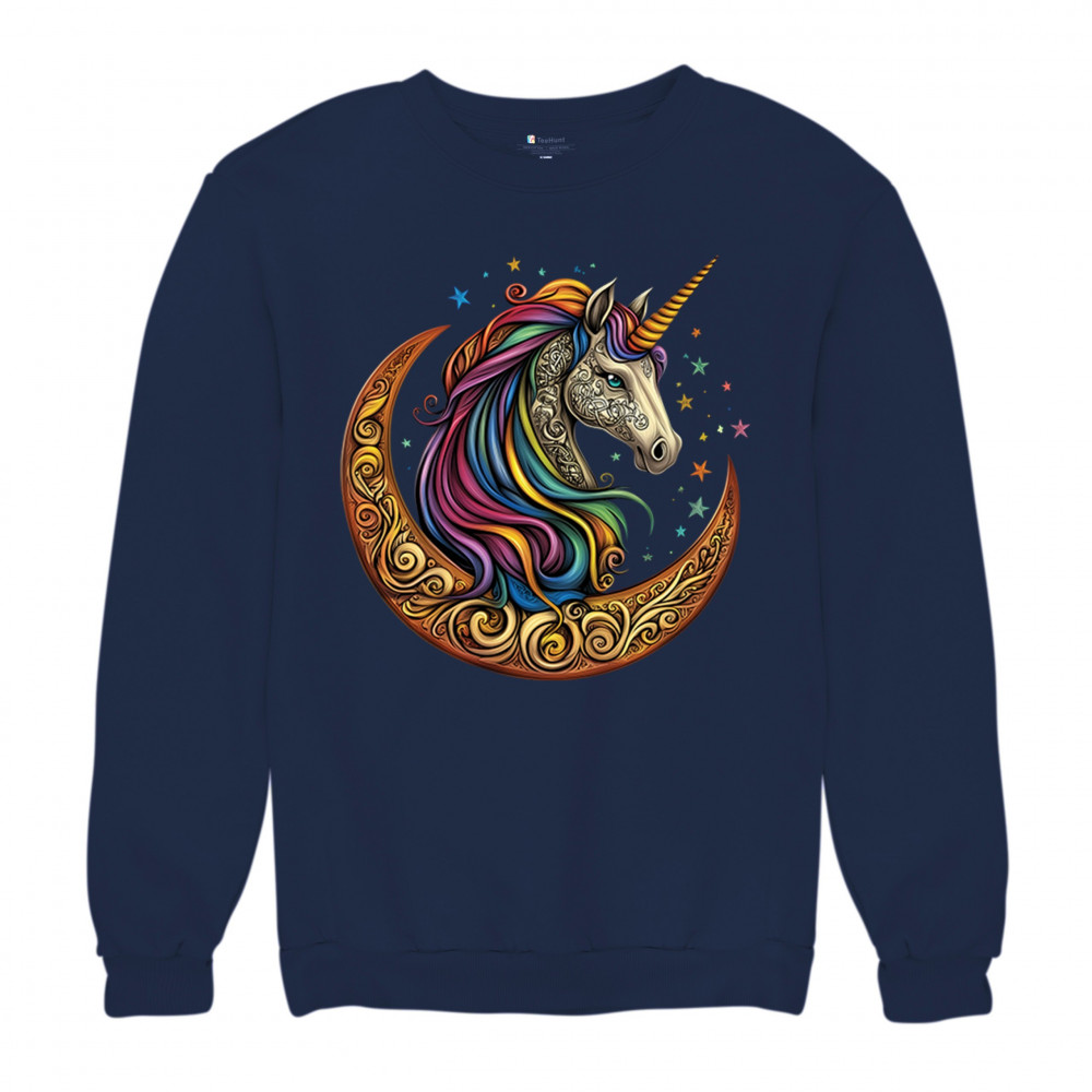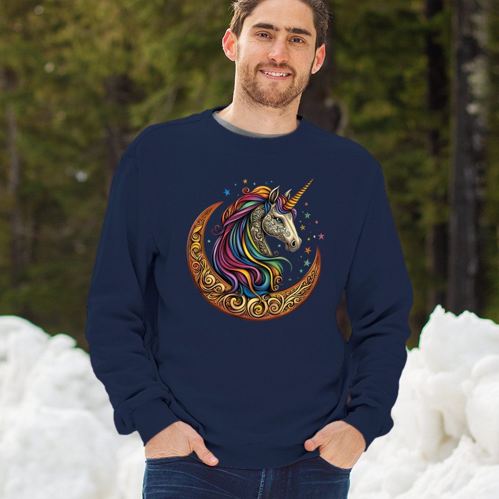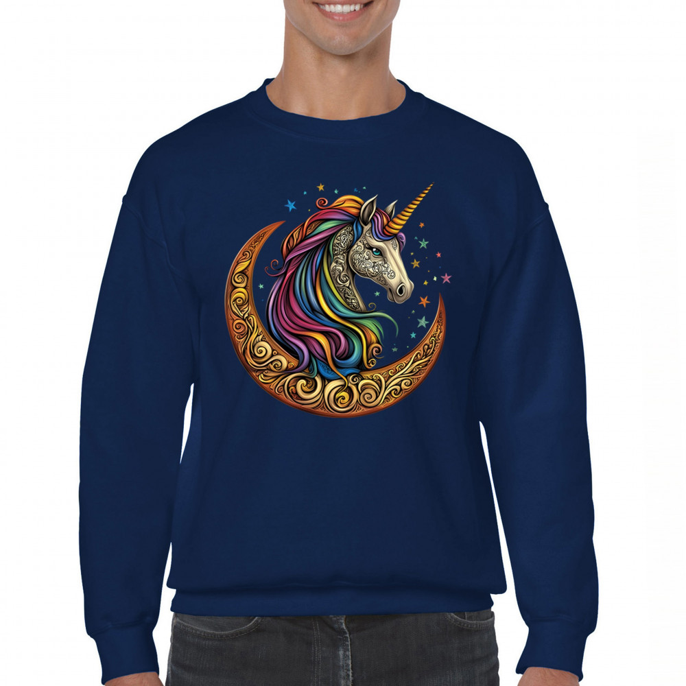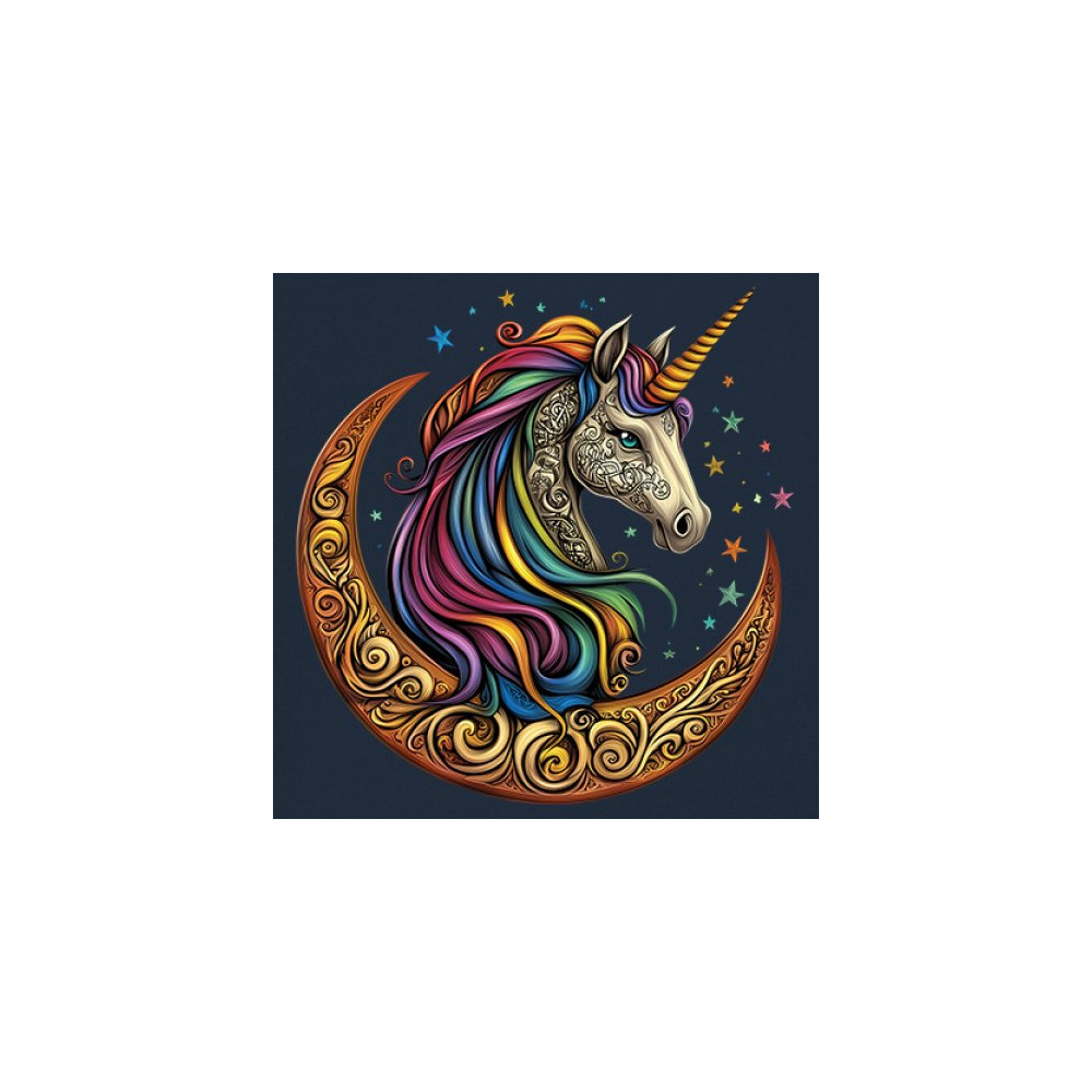 Rainbow-maned unicorn in golden Celtic moon design—perfect for fantasy lovers, dreamers, and unicorn fans who believe in magic and spirit.