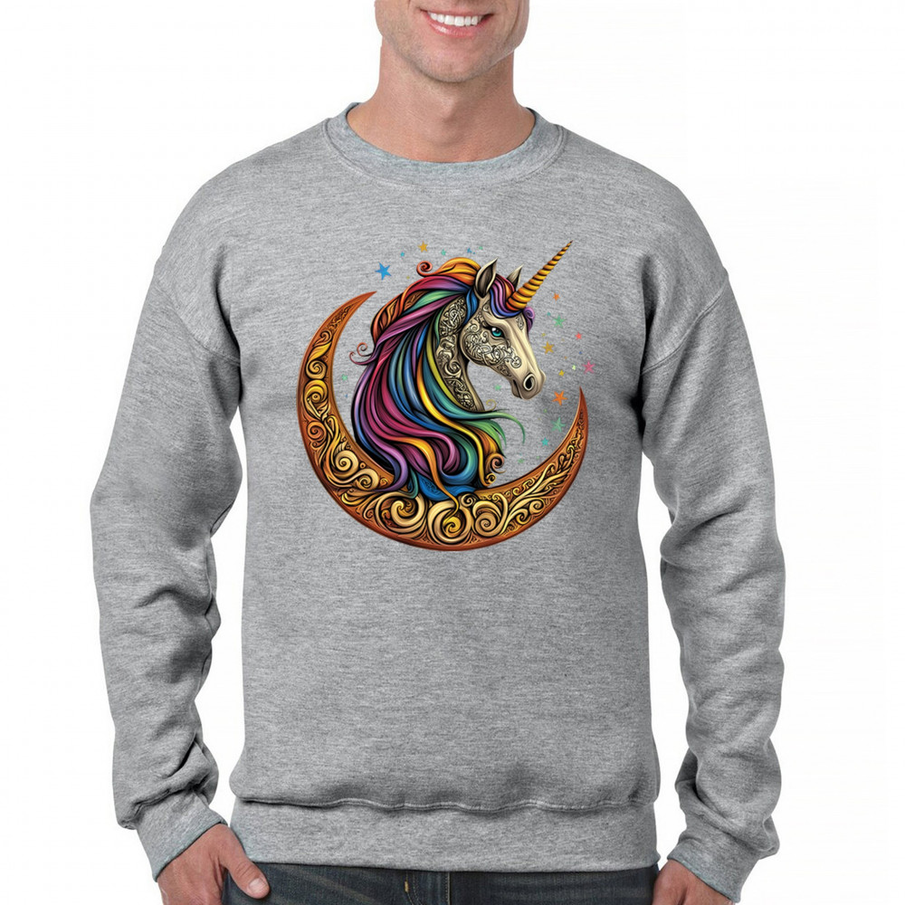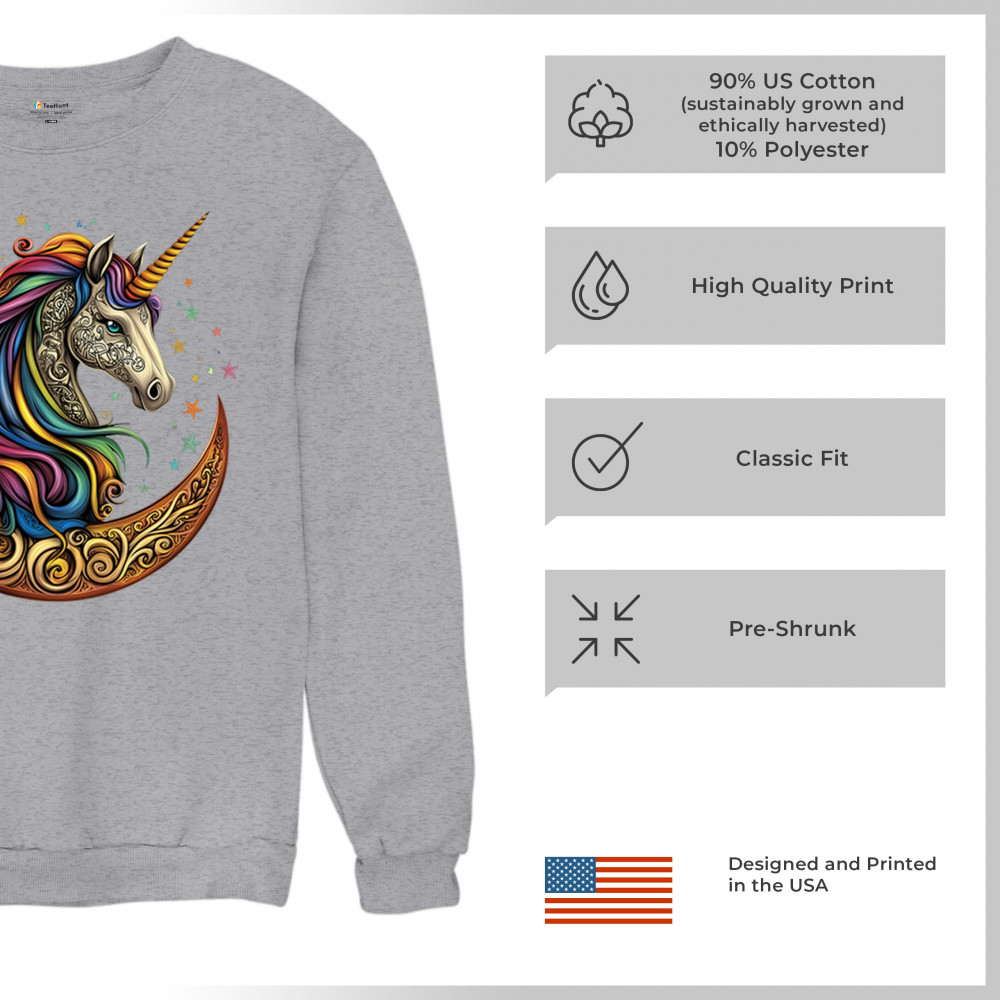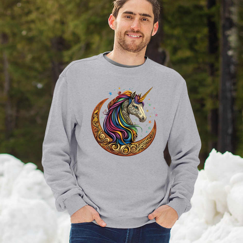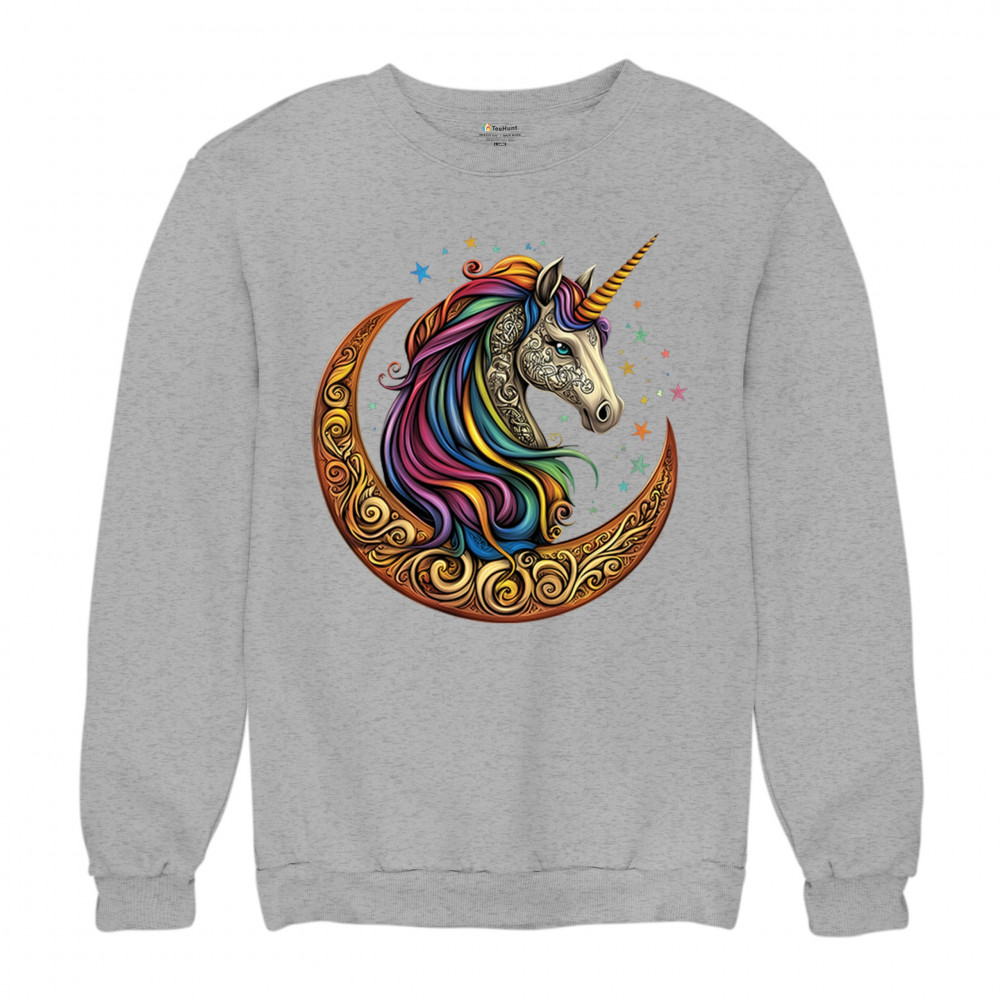 Rainbow-maned unicorn in golden Celtic moon design—perfect for fantasy lovers, dreamers, and unicorn fans who believe in magic and spirit.
