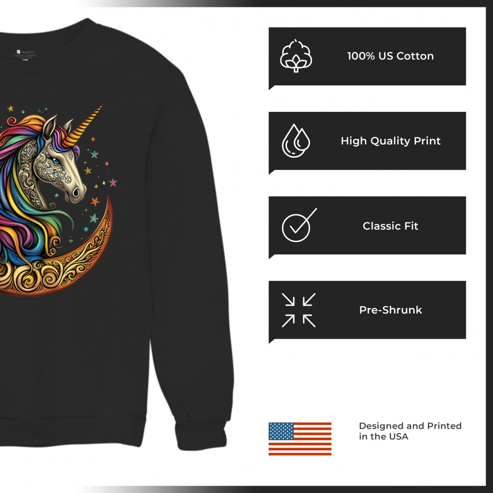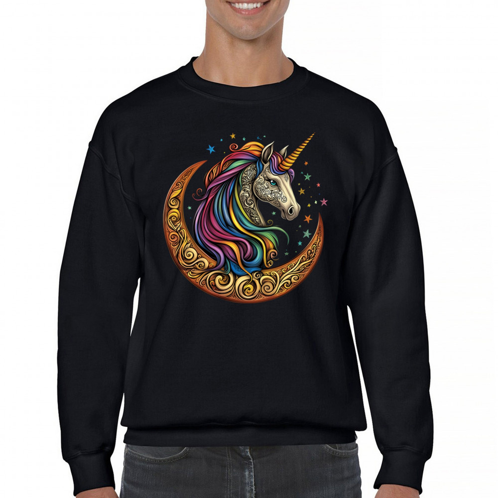 Rainbow-maned unicorn in golden Celtic moon design—perfect for fantasy lovers, dreamers, and unicorn fans who believe in magic and spirit.