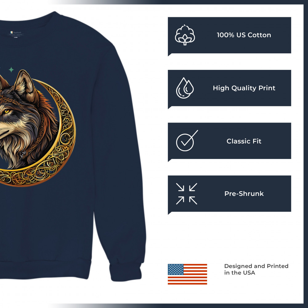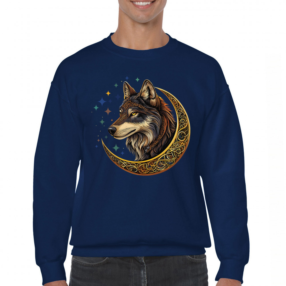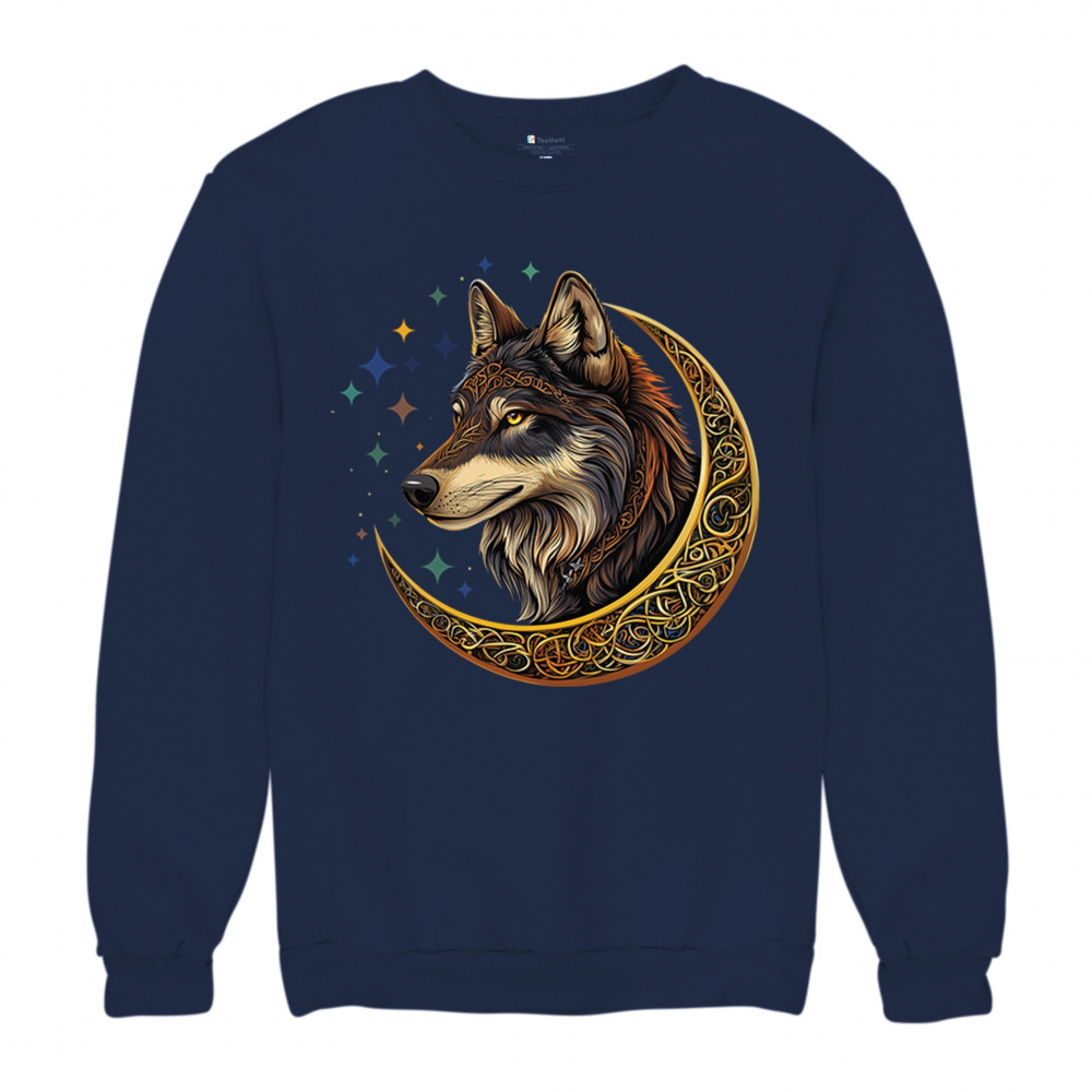 Celtic wolf design in a glowing crescent moon. Symbolizes loyalty, mysticism, and wild energy. Great for fantasy fans and spirit animal seekers.