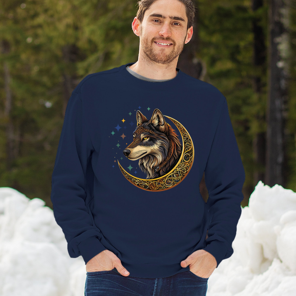 Powerful and wise, this Celtic wolf design is surrounded by a glowing golden crescent moon and cosmic stars. A symbol of loyalty, intuition, and spiritual guidance, this design is perfect for wolf lovers, fantasy fans, and tribal art enthusiasts. A bold celebration of wilderness mysticism and soul-deep strength.